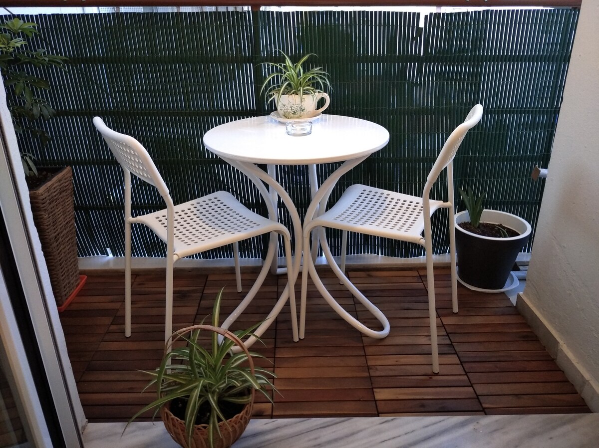 Gezellige studio op de begane grond, volledig uitgerust voor al je behoeften, zodat je een ideaal verblijf hebt. Het bestaat uit een bed, een slaapbank, een keuken, een eettafel, een bureau en een badkamer. Het ligt op slechts 15 minuten lopen van het stadscentrum en op vijf minuten van de zee om te zwemmen,wandelen en koffie te drinken. Vlakbij supermarkten, bakkerij en ziekenhuis. Het ligt in een rustige buurt en kijkt uit op een park en gemakkelijk parkeren op straat buiten het huis.