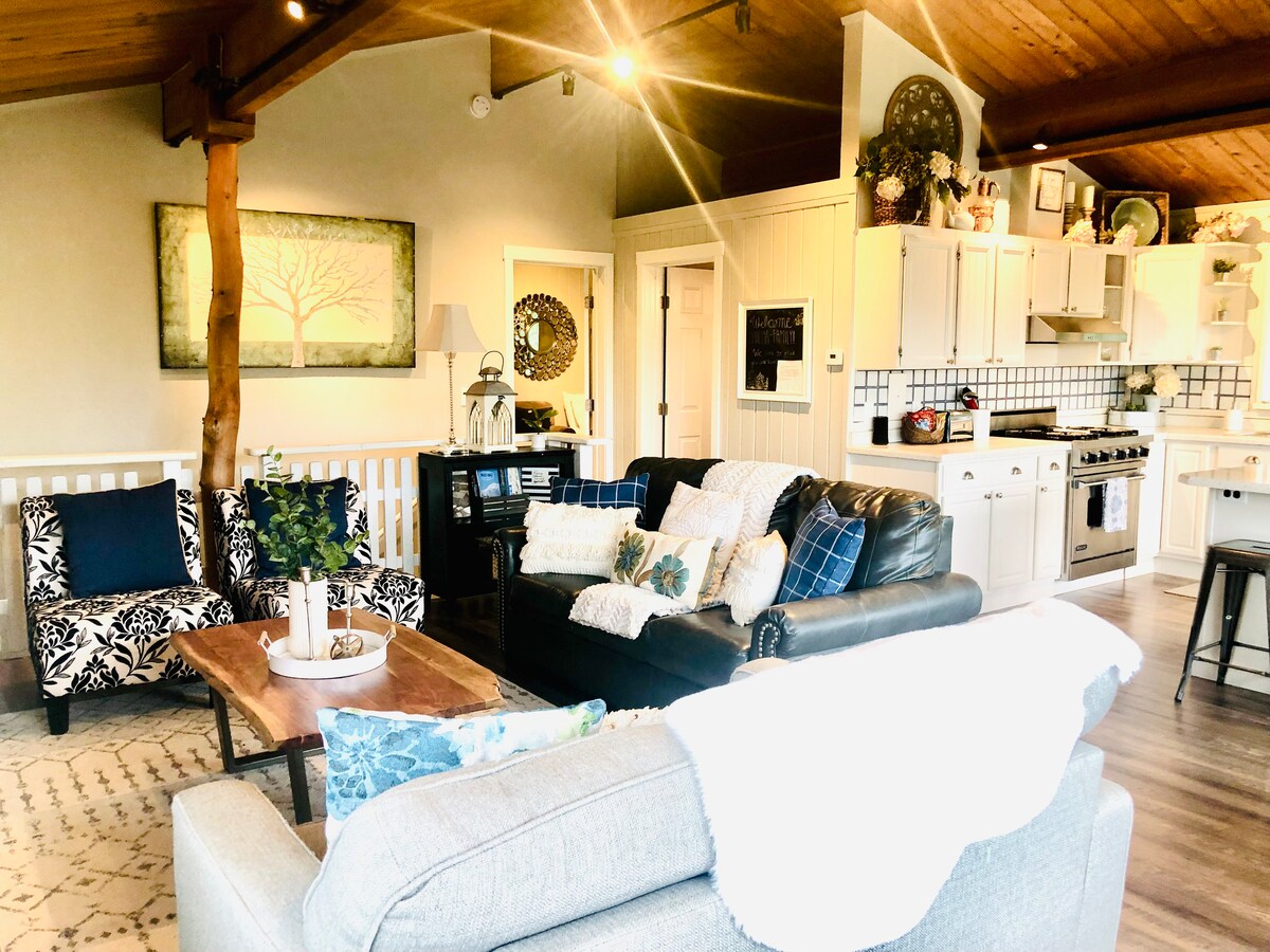 Dicht bij de stad, maar verwijderd genoeg om op te laden en te rusten na een dag vol avontuur! Deze heeft het allemaal - zo schattig! Geschikt voor grotere groepen en geweldig voor gezinnen/kinderen. Open indeling, rustig en sereen met uitzicht op de bergen en de inham, maar ook verscholen in de bomen op een groot, mooi terrein.