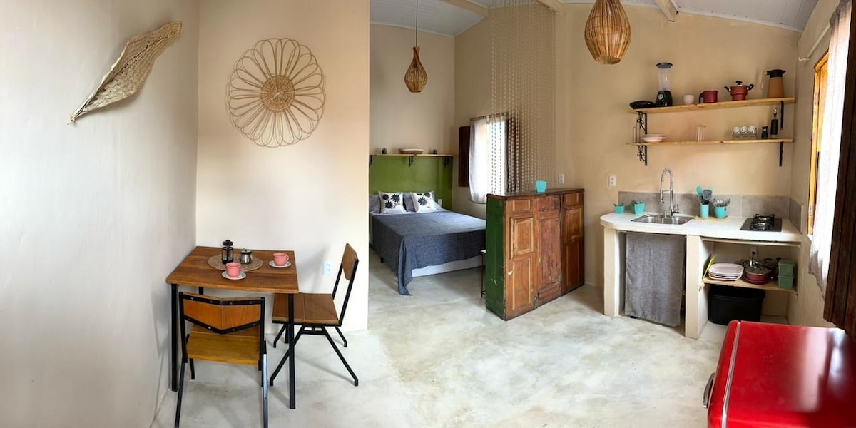 Gezellig toevluchtsoord in het hart van Mucugê, ideaal voor stellen en reizigers die op zoek zijn naar functionaliteit en comfort in Chapada Diamantina. Privésuite met knus bed, Amerikaanse keuken, minibar en inductiefornuis, plus een volledige service met wasmachine. Omgeving uitgerust met alles wat je nodig hebt: keukengerei, beddengoed, handdoeken en toiletartikelen zijn al inbegrepen voor een praktisch en comfortabel verblijf. Verblijf met vrijheid, comfort en uitstekende locatie.