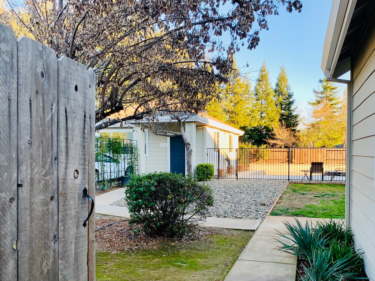 Welcome to the Madrina Guest Suite. A modern studio with exclusive fenced- in area in the rear of the unit. Large gate with private parking just feet from your door. The property backs up to a small pecan and walnut grove! Perfect for a couple or traveling professional. Close to the 5, HWY 44, and a grocery store: Holiday Market, which is conveniently right down the street. -Full sized kitchen with a mini fridge. -Queen size bed Wind down for the evening with Hulu, Disney +, Netflix.