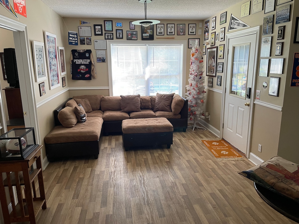 Dit is een kelderappartement in mijn persoonlijke huis met een eigen aparte ingang, badkamer en keuken. Parkeren is mogelijk op straat voor het huis en er is een betonnen loopbrug die je naar de ingang brengt. Het is een studio-appartement met je eigen thermostaat, een kingsize bed, plafondventilatoren, meer dan 500 vierkante meter en een omheinde achtertuin voor je pup als je er een meeneemt. Op enkele minuten van Clemson University, T ED Garrison Arena, I85 en op 40 minuten van het centrum van Greenville. Hulu Live is beschikbaar op de tv
