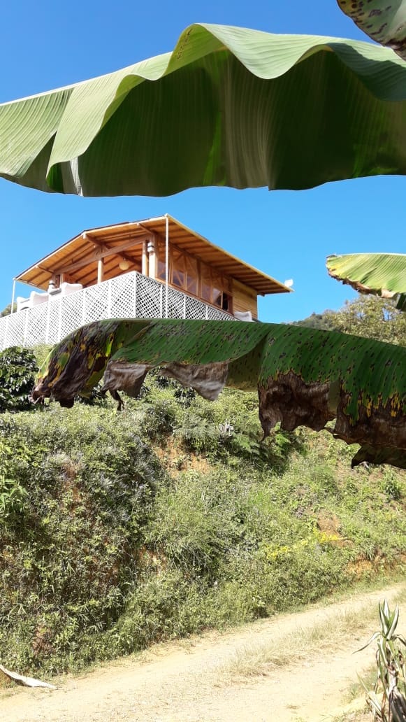 Houten huisje met twee verdiepingen en uitzicht op de hemel. Eigen badkamer en accommodatie voor maximaal 5 personen. Gelegen op een landelijk landgoed in Jardín, Antioquia (op 15 minuten rijden van de stad). Wij bieden tweetalige service en ontbijt. Nabijgelegen activiteiten zijn onder andere koffie-/honingrondleidingen, vogels kijken, paardrijden, Chorro Blanco waterval en Cueva del Esplendor grot. Ideaal voor gezinnen, stellen en freelancers. Wij bieden Starlink-internet met snelheden tot 220 MB. Nationaal Toerismeregister Vergunningsnummer 221026