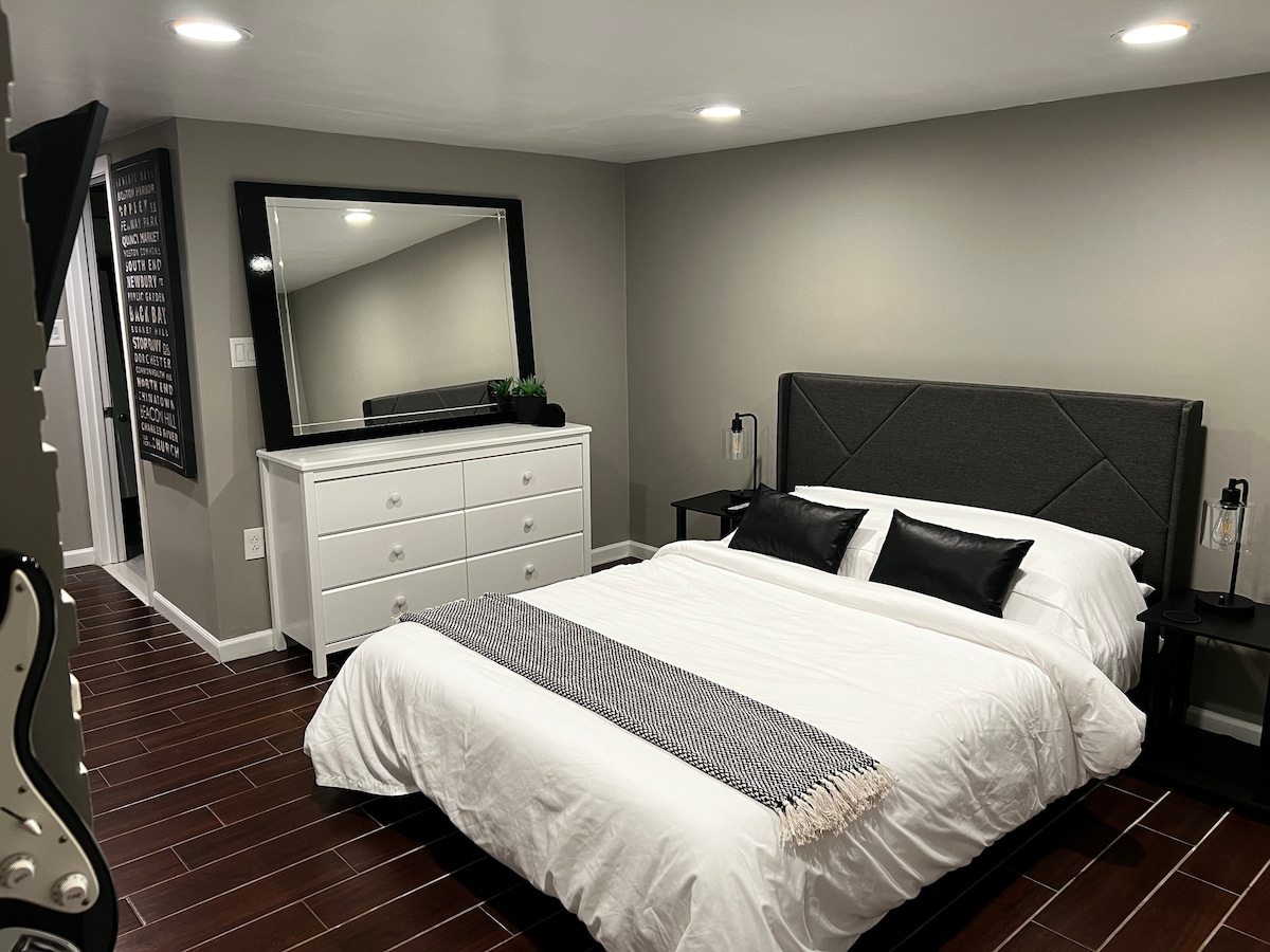 Bijna elke gast beschrijft mijn ruimte als gezellig, wat het gevoel was waar ik voor ging toen ik de ruimte ontwierp! Je zult genieten van deze ruime studio van 300 m ² met 1 SLAAPKAMER. Deze unit heeft een eigen ingang met punchcode deur, complete badkamer, grote inloopkast, minikoelkast, vriezer en magnetron. Het heeft een parkeerplaats op de oprit en een wasmachine /-droger. De achtertuin wordt gedeeld, maar de accommodatie heeft een eigen patio. Verhuur is bevestigd aan een eengezinswoning. (Let op: geen volledige keuken)