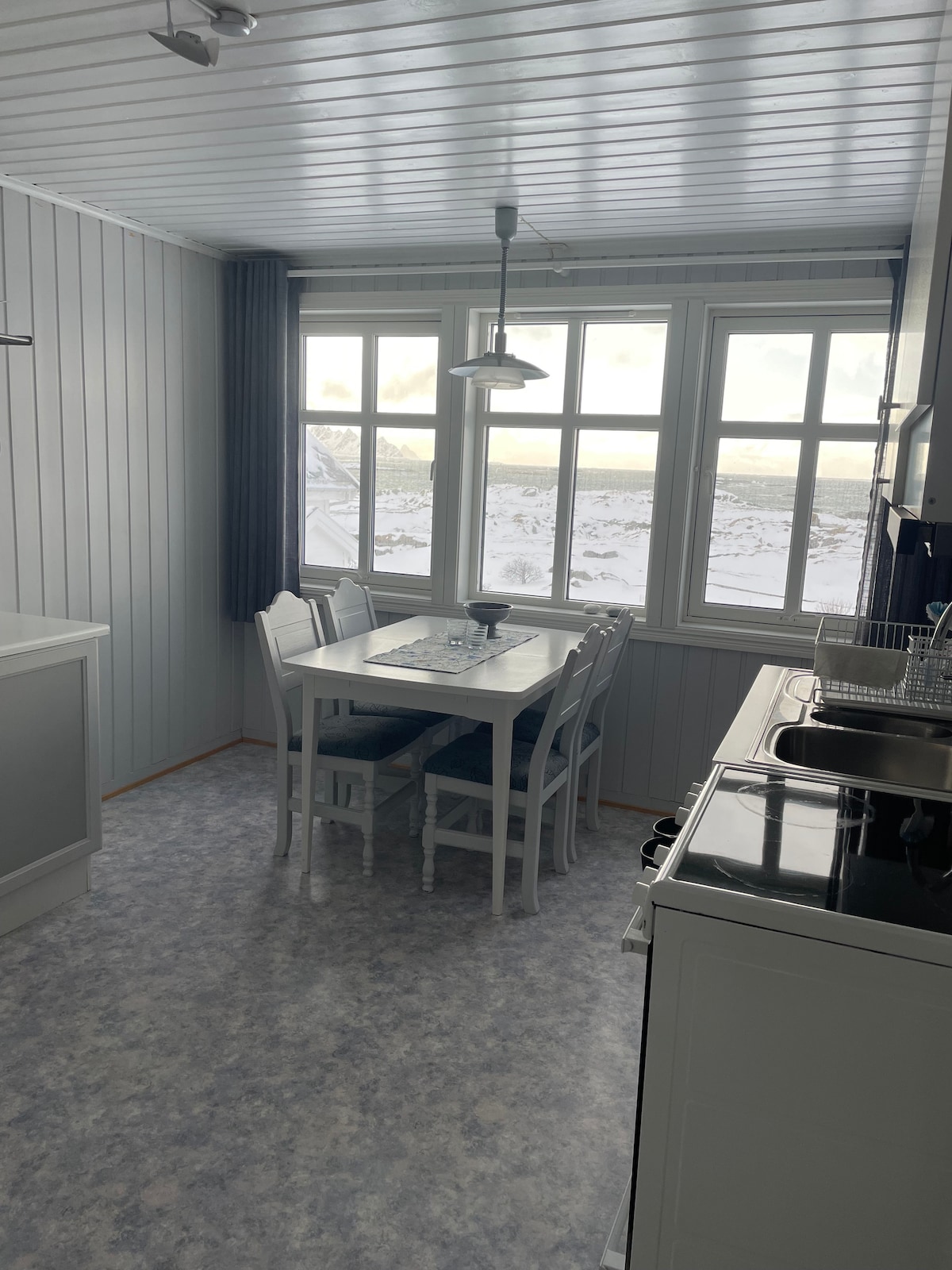 Andenes centrum appartement is een groot en ruim appartement in het hart van Andenes. Er is veel ruimte voor 10 personen. In de keuken vind je alle apparatuur die je nodig hebt om goede maaltijden te bereiden, die samen kunnen worden genoten rond de grote eettafel. Wij bieden kinderbedjes, eetkamerstoel, bestek, speelgoed, boeken en Lego voor kinderen. De trap naar de gang heeft een babyhekje. Op loopafstand van walvissen spotten, museum, winkels, supermarkt, haven en veerboot. We accepteren geen dieren vanwege allergieën.