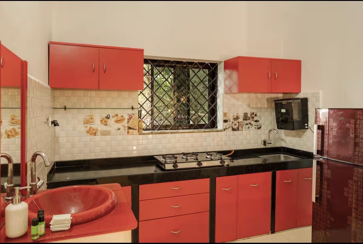 Tropisch 3BHK huis | Weelderige groene omgeving Ontspan in dit prachtig ontworpen appartement met 3 slaapkamers in Goa met rustgevende groene interieurs en een warme tropische sfeer. De woning beschikt over drie ruime slaapkamers, airconditioning, stijlvolle verlichting en grote ramen met veel natuurlijk licht. Geniet van je eigen balkon met gedeeltelijk uitzicht op zee, met uitzicht op weelderig groen en het iconische Chapora Fort. Perfect voor rustige ochtenden. Ideaal voor gezinnen, vrienden en lange verblijven in Noord-Goa.