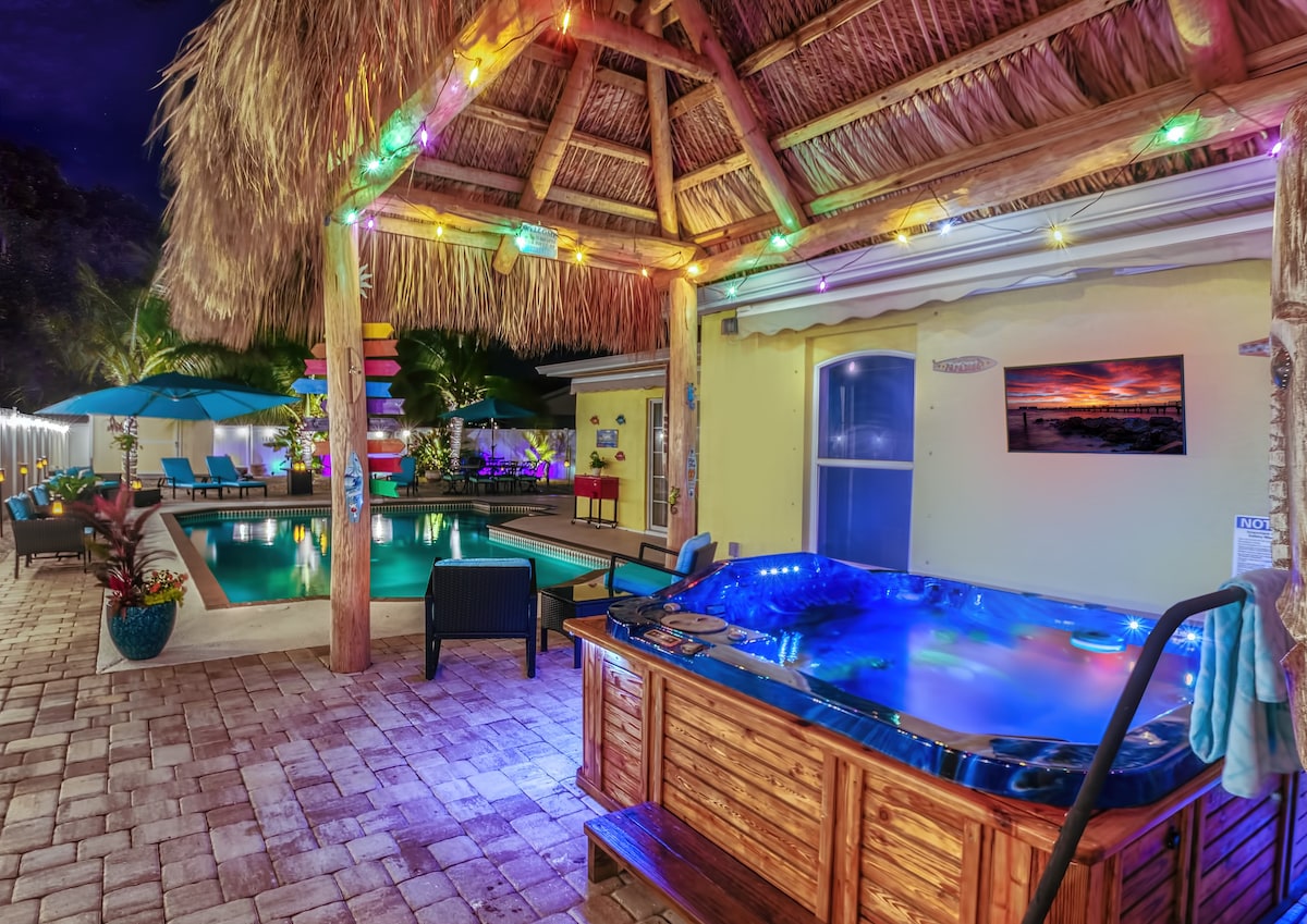 Enjoy your little slice of paradise at the beautifully decorated Orange Oasis! 3 bedrooms & 2 baths, plus a daybed with trundle. Heated Pool. High speed wifi & 4 TV's all with Hulu, Apple TV, Disney+, & ESPN. Vaulted ceiling, rainfall walk-in shower, washer & dryer, large fenced backyard, pool, garage parking, Weber grill, & a quiet safe neighborhood. The home comes fully stocked with Ziploc bags, cooking/kitchen essentials, coffee, beach essentials, & outdoor/indoor games.