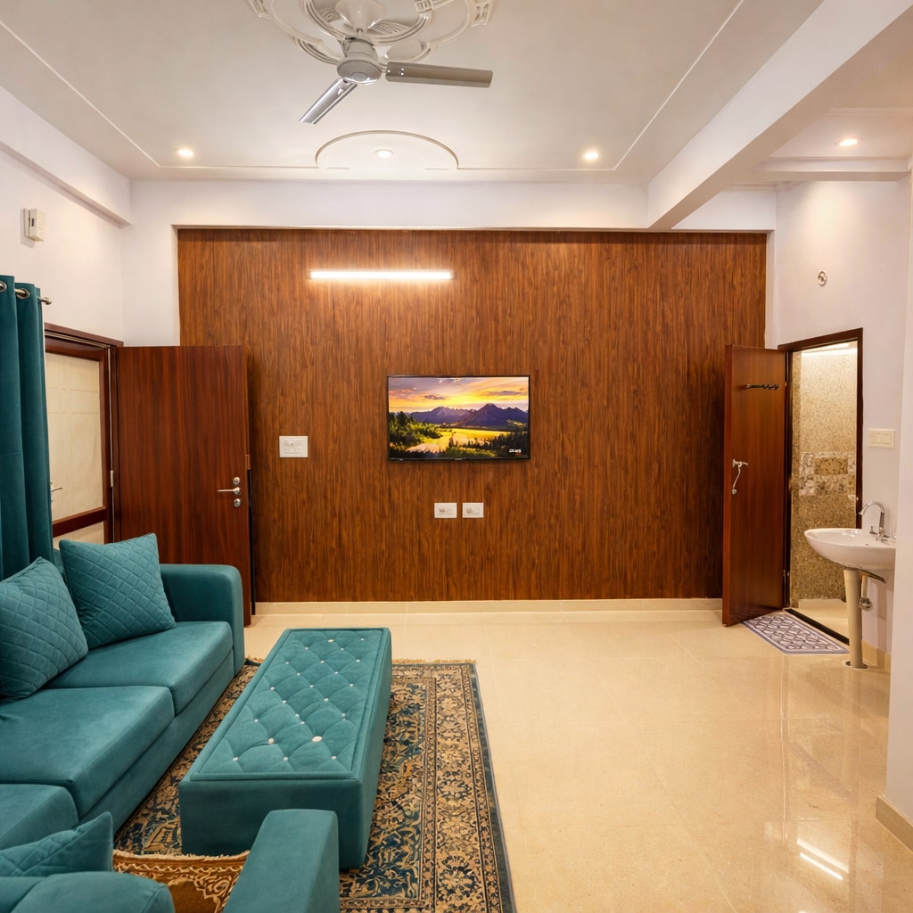 Discover our luxurious 3BHK penthouse, ideal for family gatherings, house parties, and group stays. With spacious living areas and private balconies offering stunning city views, it’s designed for comfort and elegance. An equipped kitchen, cosy bedrooms, and modern amenities ensure a seamless stay. Perfect for travellers visiting Ayodhya, our prime location offers easy access to dining, shopping, and attractions, and is an elevated retreat for memorable experiences.