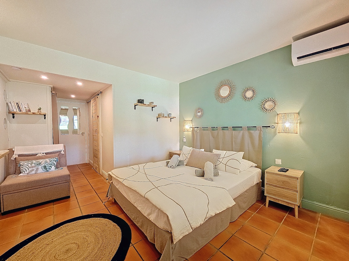 Studio van 30 m2, comfortabel, gezellig, open naar buiten, nodigt je uit om uit te rusten in een droomomgeving. Het is net gerenoveerd, op de tweede verdieping van het Frangipanier-gebouw op 548, aan de schaduwrijke kant. Residentie onder toezicht van beveiligingsagenten, lagunestrand op 50 meter afstand, infinity pool op 50 meter afstand. Nieuwe en individuele airconditioning. 180*200 bed. Bed- en badlinnen aanwezig Strandhanddoeken
