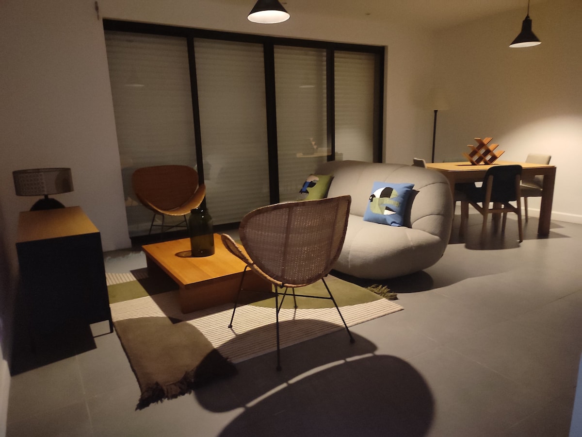 Mooi rustig en gastvrij appartement, met een charmante inrichting op 15 minuten van het stadscentrum Een vriendelijke leefruimte met kamerhoge ramen. Een volledig uitgeruste keuken naar de eetkamer Een slaapkamer met tweepersoonsbed en een gezinsslaapkamer met een zithoek uitgerust met een grote kledingkast voor je opslag Een functionele badkamer met warm water Privé toilet Een balkon om tot rust te komen en te genieten van het prachtige uitzicht Glasvezel wifi en tv met grachten Een garage