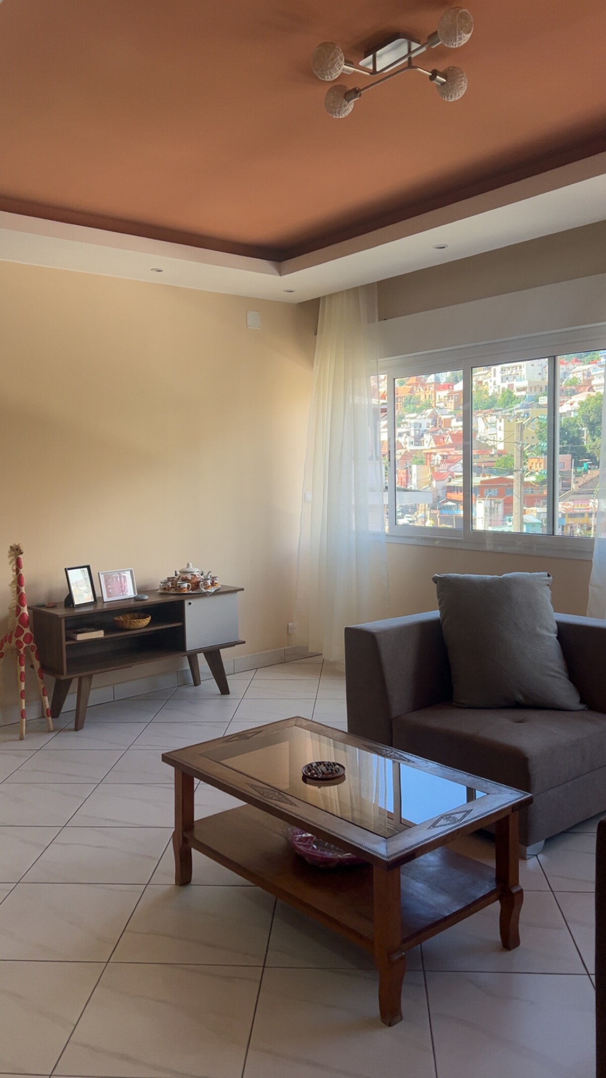 Stadscentrum, ruim en comfortabel appartement. Uitzonderlijk uitzicht op het Paleis van de Koningin, het Anosy-meer en het Barea-stadion. Rustige en veilige buurt. Op 5 minuten lopen van de administratieve dpt (Anosy, Antaninarenina), dicht bij alle voorzieningen en trendy restaurants. 3 slaapkamers met elk een tweepersoonsbed. Uitgeruste keuken, wasmachine en warm water. Zonnig terras, 's ochtends en 's avonds. Wifi en tv met groot scherm. Flexibele in- en uitchecktijden. Onverslaanbare waar voor je geld.