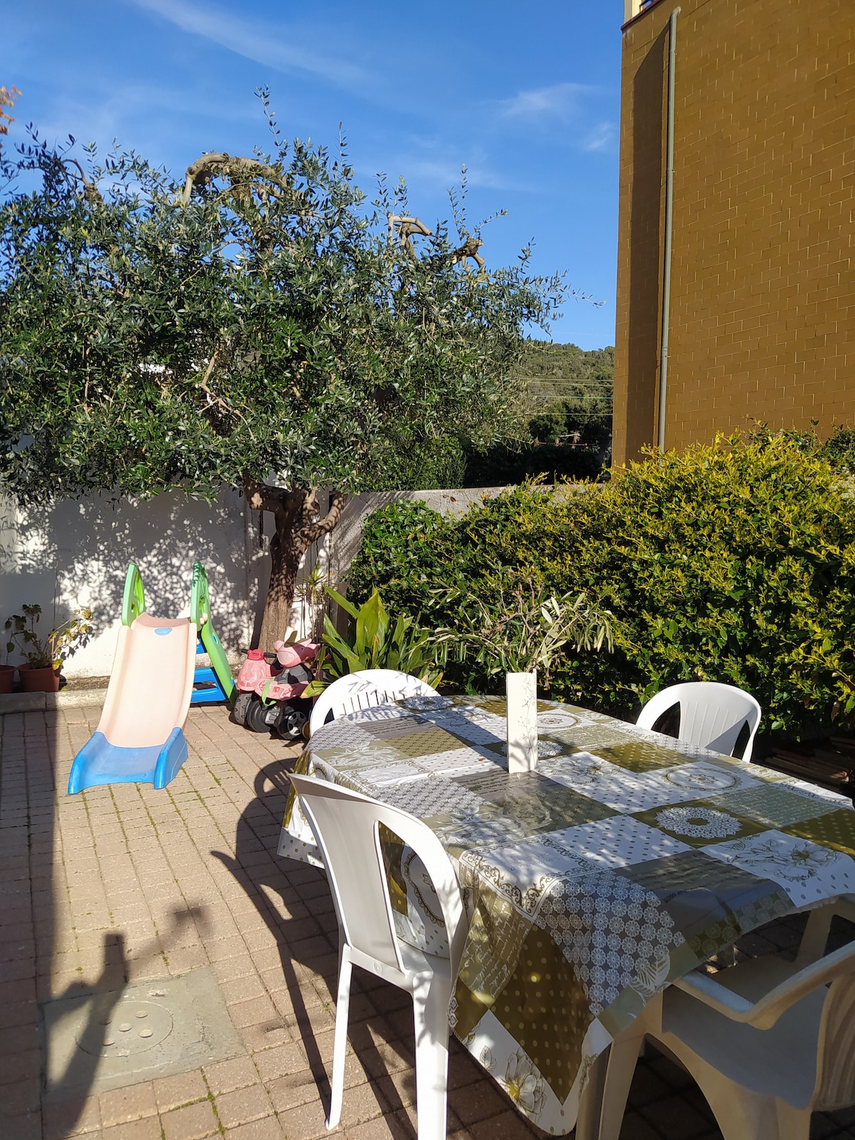 Casa rustica indipendente a 800 metri dal mare con ampio giardino in zona residenziale. Posti macchina inclusi. L'alloggio è composto da 1 camera matrimoniale e 1 piccola sempre con letto matrimoniale (4 posti letto totali), salotto, cucina e un bagno con doccia e lavatrice. All'esterno si trova un'ampia veranda ombreggiata un barbecue e un tavolo da ping pong. Nella zona sono presenti negozi di beni di prima necessità e qualche ristorante. la casa è situata a 10/15 min dal centro città.