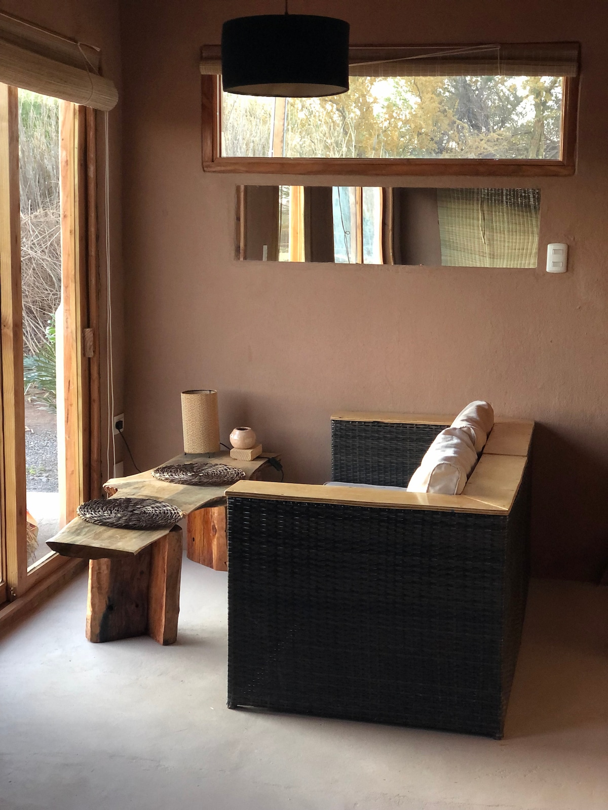 Casa Birque is ontworpen, zodat je comfortabel en rustig kunt genieten van je bezoek aan San Pedro de Atacama. Het is gebouwd met adobe, waardoor het een thermaal huis is, overdag koel en 's nachts warm is. Het is gelegen op een groot stuk land vol inheemse bomen, met een prachtig uitzicht op de Andes en de vulkanen en vanwaar je de nachtelijke hemel heel goed kunt waarderen. @taru_ataama Het heeft een slaapkamer met een kingsize bed en twee eenpersoonsbedden in de woonkamer.