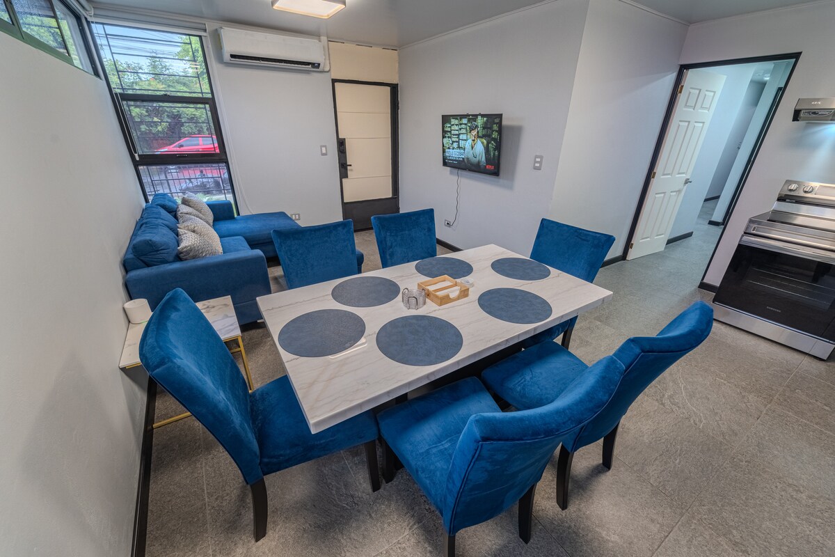 Geniet van een stijlvolle ervaring in San Salvador met deze centraal gelegen woning. Door je reservering te maken, krijg je directe toegang tot supermarkten, restaurants, het Centro Histórico, winkelcentra en ziekenhuizen. Met capaciteit voor maximaal 4 gasten. Wij bieden 2 slaapkamers met in totaal 3 bedden (2 eenpersoonsbedden en 1 queensize bed), de kamers en woonkamer hebben airco; de keuken is volledig uitgerust. Er is gratis parkeergelegenheid, 24-UURSBEVEILIGING en beveiligingscamera. 100 MB internet.