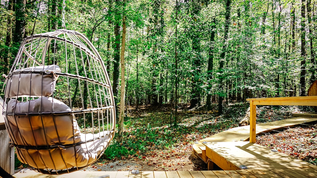 Genesteld in de bomen, Archimedes ’Nest op de Emu Ranch is de dromerige, romantische ontsnapping die je hebt gezocht. Dit op maat gemaakte toevluchtsoord is ontworpen voor ontspanning en zelfgenoegzaamheid, compleet met speciale voorzieningen om je verblijf comfortabel te maken en uitzicht op de boom en de tuin vanuit elk raam waar je een glimp kunt opvangen van de emoe, kalkoenen, zwanen en pauwen die hieronder rondzwerven. Het is rustig en privé, maar toch op loopafstand van East Atlanta Village - een van de populairste buurten in Atlanta.