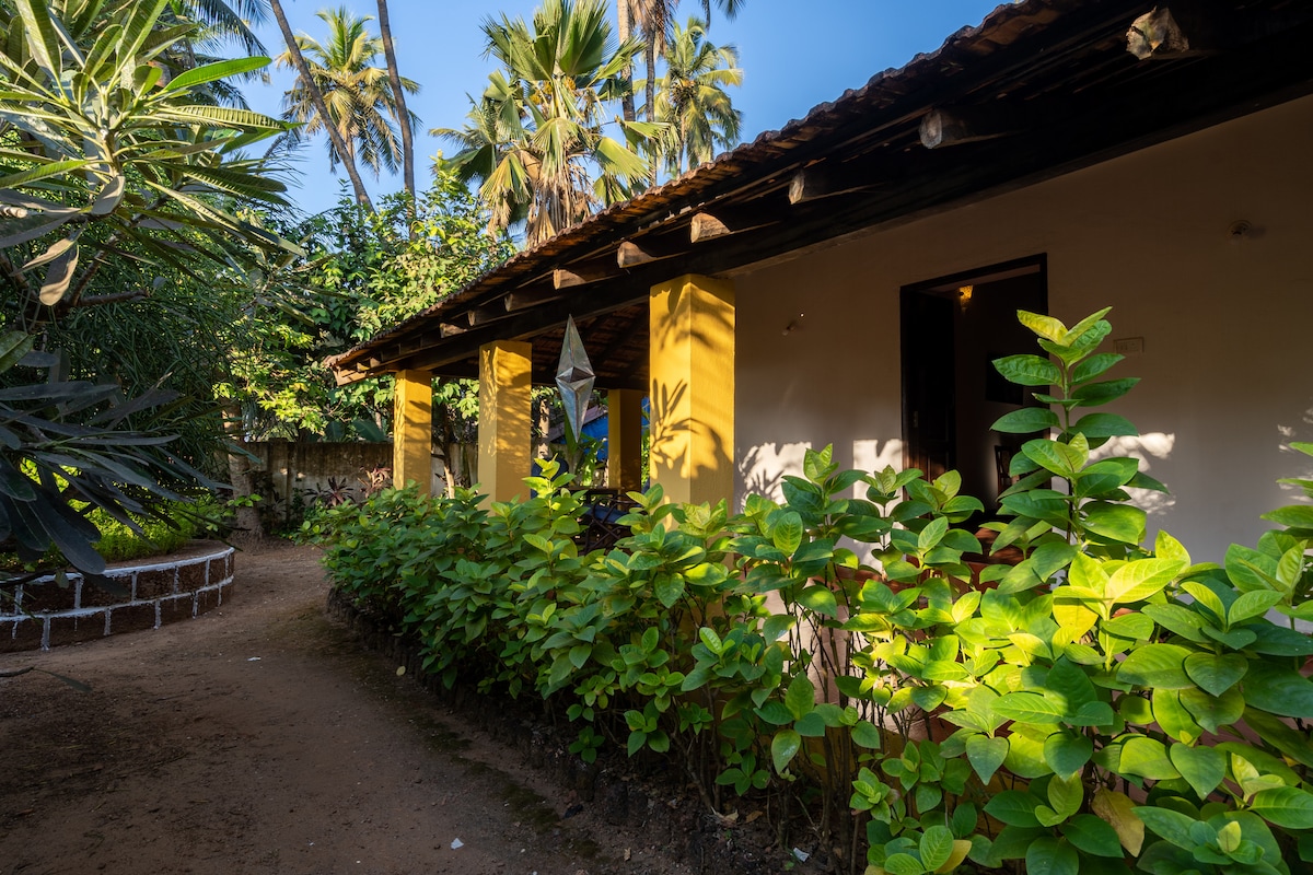 Een prachtige boho-sfeer was voor mijn gedachten bij het creëren van dit prachtige huisje. Weggestopt in een rustig hoekje, met uitzicht op een biologische moestuin met uitzicht op de velden, word je getraport naar een vervlogen tijdperk waarin de dingen gewoon veel langzamer waren. Tijdens het kijken naar de vogels en de bijen, het genieten van ontspannen kopjes thee, was chatten op het balkon een deel van de dag. Omgeven door bomen zie je een andere kant van Goa. Toch ben je letterlijk 5 minuten verwijderd van het feestcentrum van Goa.