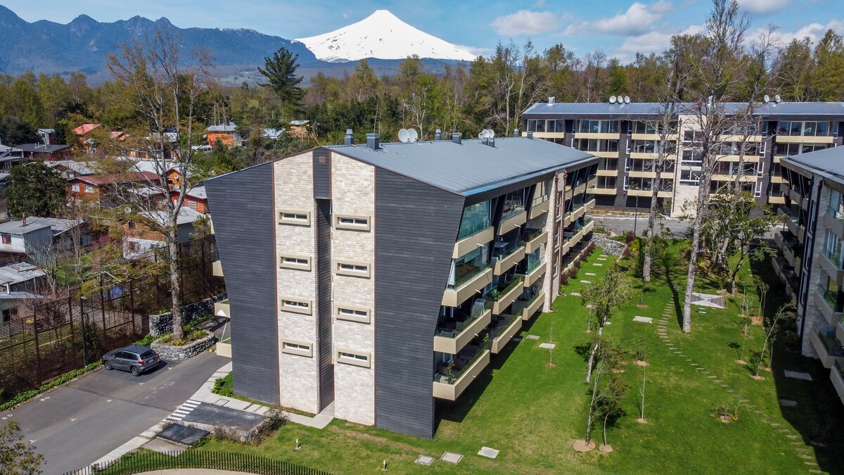 Kom naar Pucón en beleef een unieke ervaring. Dit appartement met 1 slaapkamer en 1 badkamer verwelkomt je met een ruim terras en een spectaculair uitzicht op de Villarrica-vulkaan, ideaal om te ontspannen en los te koppelen. Het heeft snelle wifi en een smart-tv, zodat je je favoriete series of films niet mist. Ideale locatie: dicht bij restaurants, meer, warmwaterbronnen en buitenactiviteiten. Slechts 5 minuten van het centrum met de auto of Uber, of 1 km lopen.