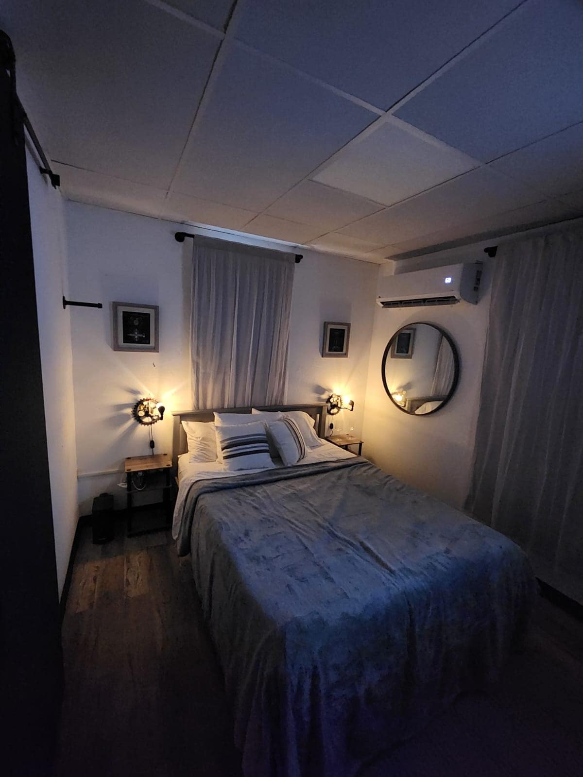 Gezellige studio op de achtertuin van een hoofdgezinswoning. De woning ligt aan een privéstraat in familiebezit. Gedeelde kamer. Twee bedden gescheiden door een muur,geen deur. Zithoek, garage. Een badkamer. Op loopafstand van bakkerij, apotheek, artsen en kapperszaak. Op enkele minuten afstand van hoofdwegen en snelwegen, kruidenierswinkel en winkelcentra. Het ligt op 6 minuten afstand van het hoofdziekenhuis Metro Pavia op straat #129. Het ligt op 15 minuten van Islote en Caza y Pesca Beach. We hebben een stroomgenerator en waterreservaat.