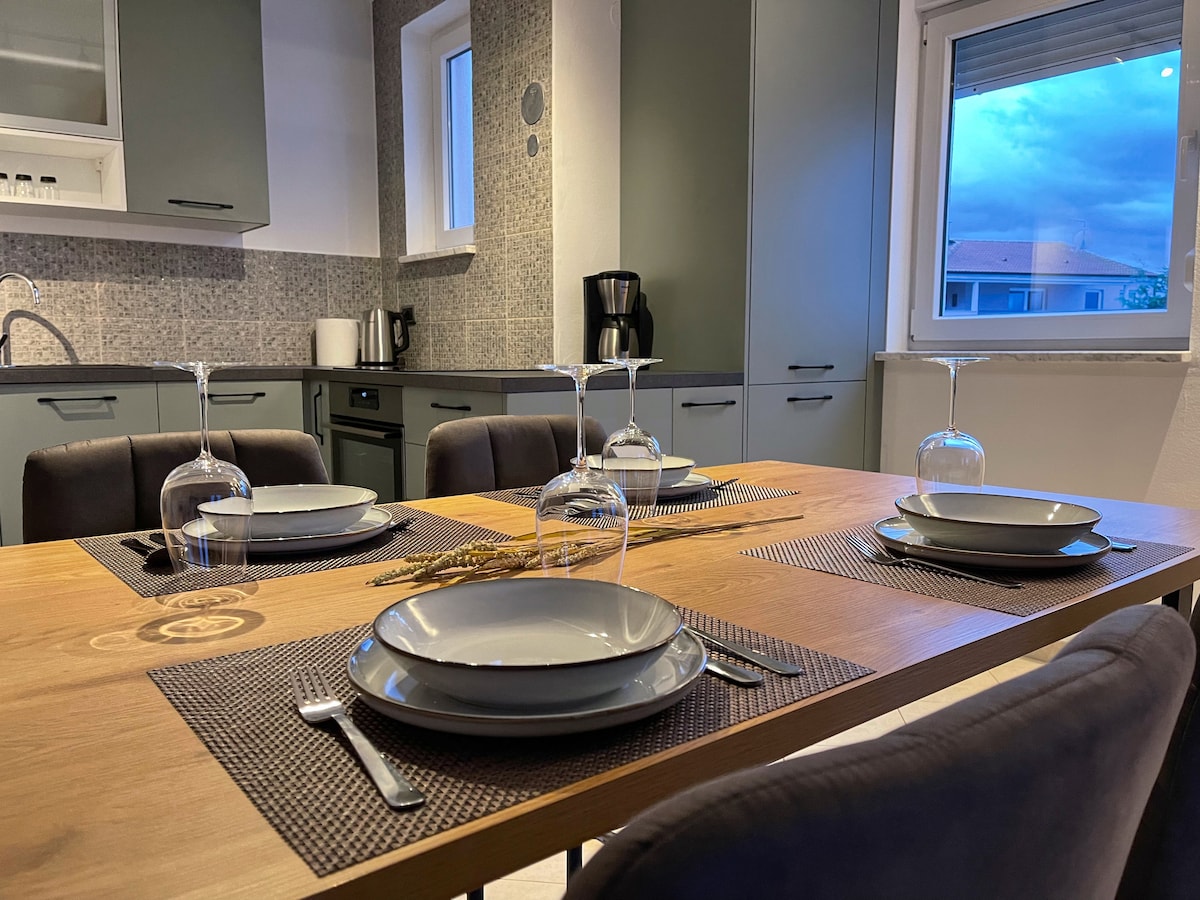 Sea view designer apartment just 100 meters from the beach with free parking. Spacious and modern, ideal for families or groups up to 5 guests and couples and digital nomads during spring. Features 3 bedrooms, a fully equipped kitchen, comfortable living area and a beautiful terrace overlooking the sea and pine forest. Parking in front of a house, Wi-Fi, air conditioning in every room. Perfect base for a relaxing summer holiday and exploring historic Pula.