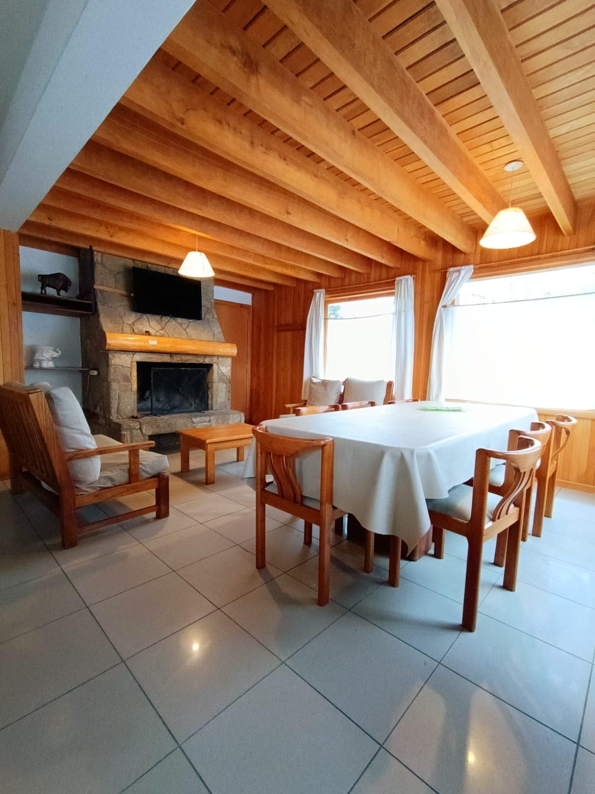 Disfruta tu alojamiento en la Patagonia. Apart Superior II - frente a la piscina: Planta baja: Living-comedor con TV y hogar a leña, cocina totalmente equipada (microondas, cafetera eléctrica, heladera con freezer, cocina con horno y vajilla completa). Toilette sin ducha. Primer piso: Dormitorio matrimonial con TV y otro dormitorio con 3 camas y TV. Un baño completo con hidromasaje simple, provisto de secador de pelo. Segundo piso: Dormitorio con 3 camas y TV. Un baño completo con bañera.