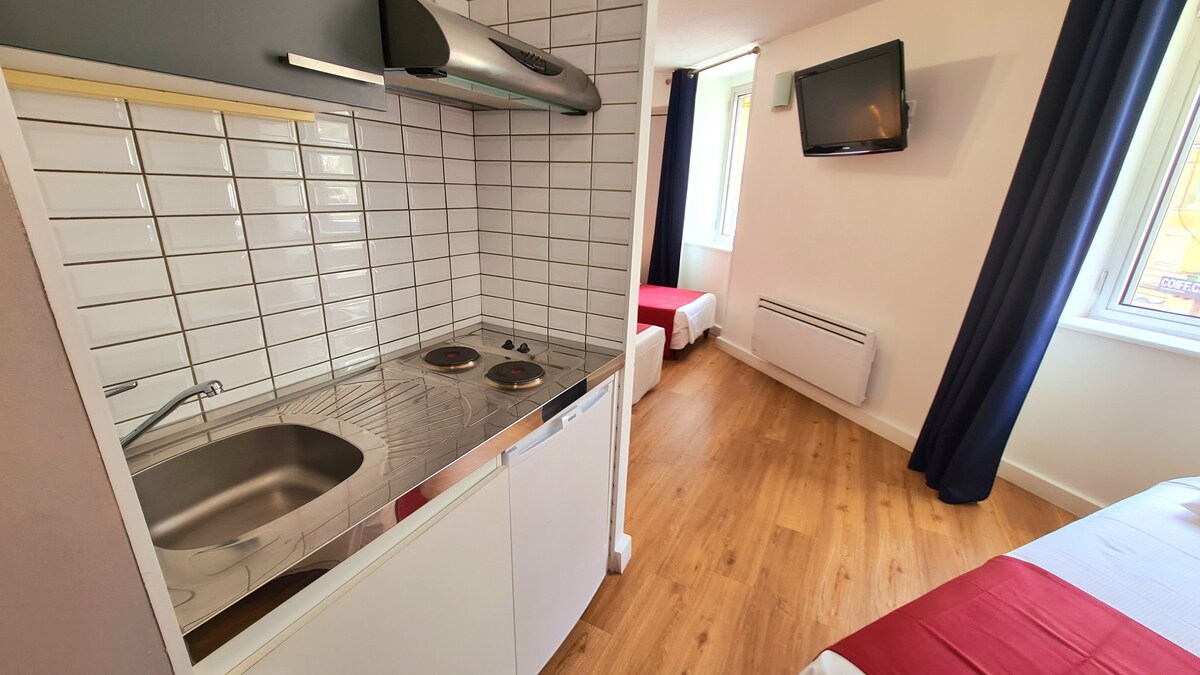 Mon logement est proche de la gare. Les commerces de proximité accessibles à pied en 5mn. Hébergement en chambre twin, (occupation simple: vous serez seul dans la chambre ) salle de bain et wc à l'extérieur de la chambre. Les draps ne sont pas fournis, ils sont facturés 6 €/ la paire à la location. Un supplément animal, chien ou chat, de 6€/nuit est à régler sur place. Le jour du départ vous devrez faire le ménage. Le wifi est accessible gratuitement dans tout l'établissement.