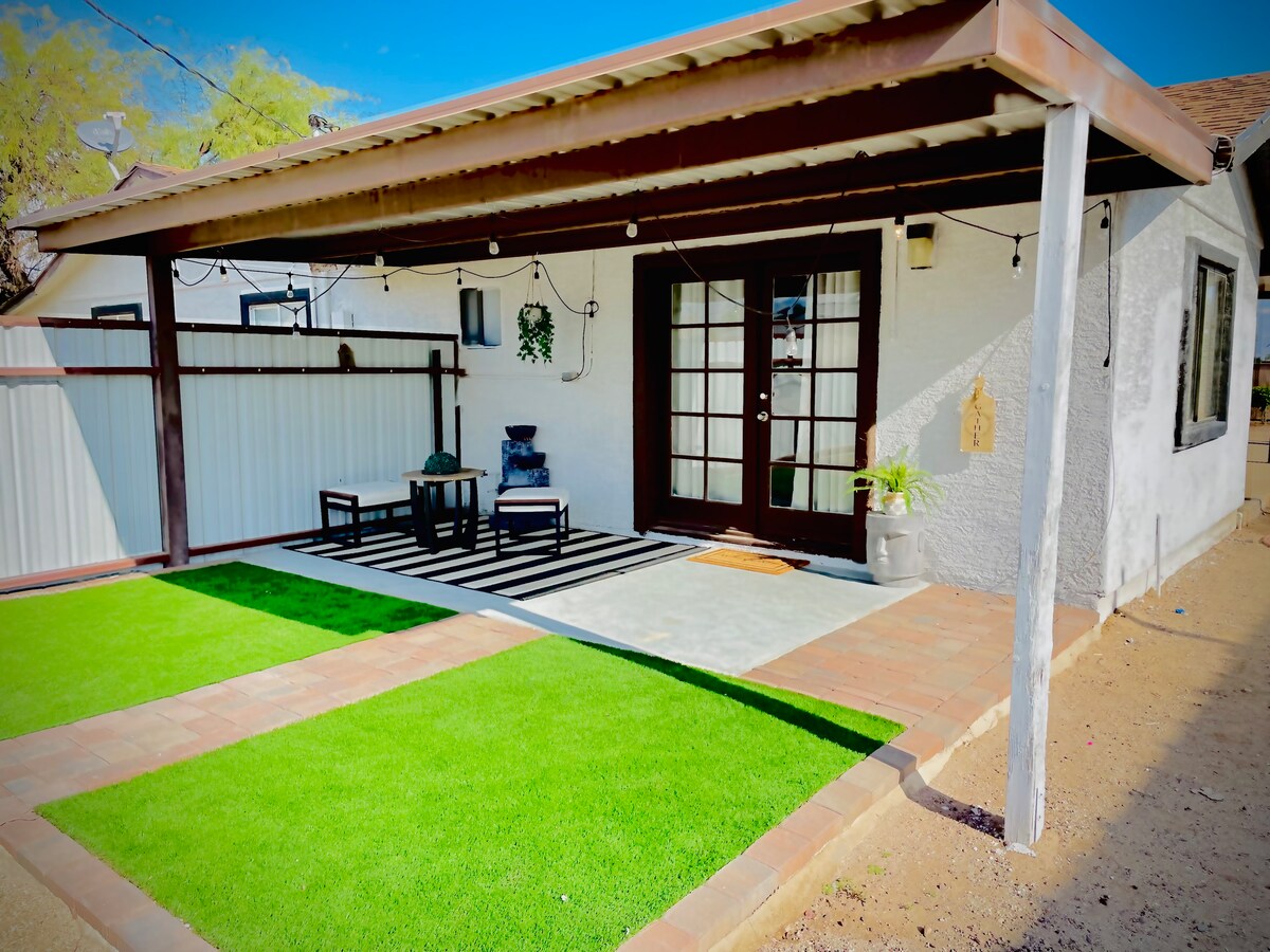 Welcome to your private Glendale casita! A cozy retreat with gated patio, private entrance, in-unit laundry, and a compact full kitchen. Just minutes from Westgate, State Farm Stadium, Luke AFB, Spring Training, and Park West — everything you need is at your fingertips. Ideal for 2 adults + 2 kids, or up to 3 adults.