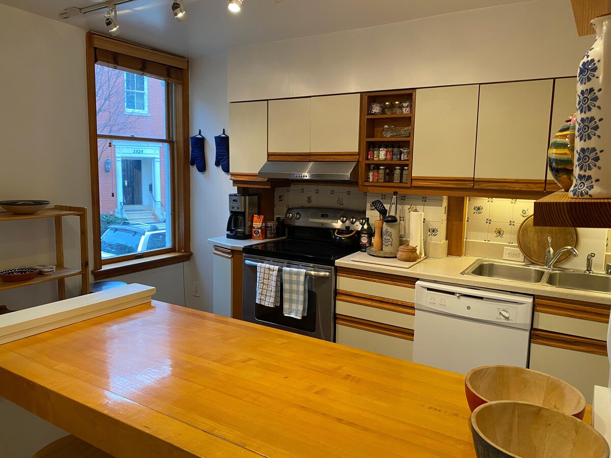 Professioneel ingericht, in een van de meest gewilde wijken van DC. Gemakkelijke toegang tot alles, aan een zeer rustige straat in Georgetown. Deze ruimte op straatniveau wordt alleen gebruikt voor zakelijke verhuur of kortetermijnverblijven. Hardhouten vloeren, full-service keuken met vaatwasser, kookplaat en full size oven, werkbare houtkachel zijn slechts enkele van de kenmerken van deze stijlvolle unit uit het midden van de eeuw. Mocht deze ruimte niet beschikbaar zijn, dan staat de bovenste unit van dit huis met twee verdiepingen ook op Airbnb.