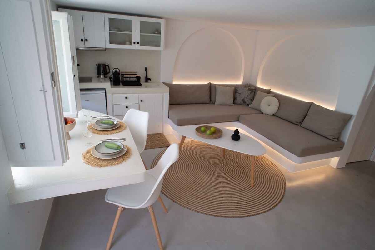 Damaskini's House is een huis van meer dan 200 jaar oud, dat volledig en met veel zorg is gerenoveerd. Het behoudt de Cycladische architectuur ongewijzigd, maar combineert deze met moderne gemakken. Het huis heeft alles wat het verblijf van de gasten vergemakkelijkt, zoals een keuken, wasmachine, airconditioning, een boiler op zonne-energie, maar ook een warmtepomp, die het hele jaar door koeling en verwarming biedt.