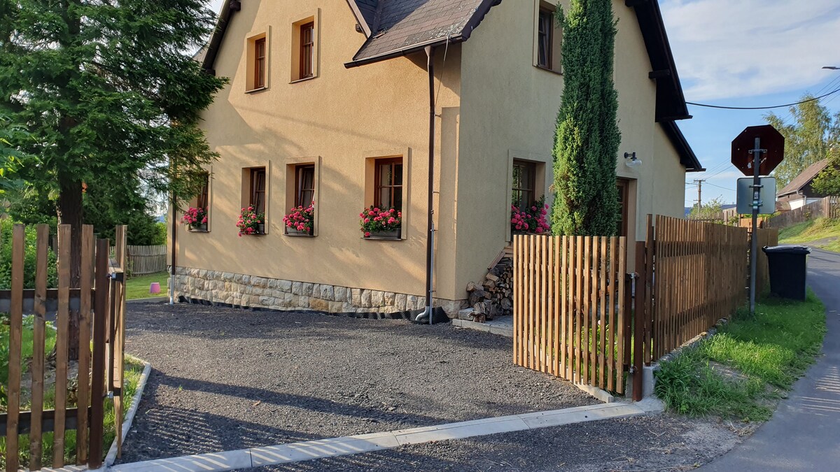 Nieuw - Barbecuezone met zitplaatsen en grill! Gloednieuwe, gezellige accommodatie in het hart van het Tsjechische Saksen. Het vrijstaande gebouw ligt op een heuvel en biedt een prachtig uitzicht op het omliggende landschap en romantische ochtendzonsopgangen. De onconventionele loftindeling van het appartement zal een buitengewone ervaring voor u zijn. Ideale plek voor uw uitstapjes - alle aantrekkelijke plaatsen van het nationale park bevinden zich in de directe omgeving, het Duitse Dresden ligt op 50 km afstand. Uw reis naar een onvergetelijke ervaring begint hier!