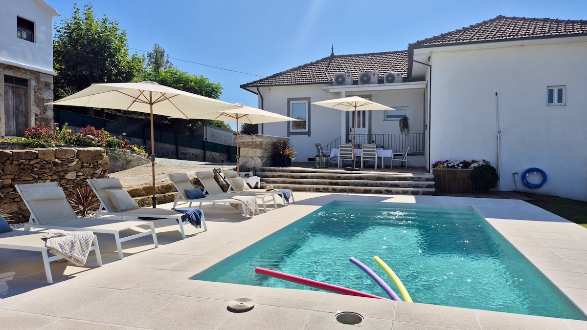 A Cancela House is a relaxing rural house in the countryside of the municipality of Arouca, famous for the Paiva walkways, the suspended bridge 516 and the river ativitives in river Paiva. In a small village in the north of the municipality, close to the Douro river, only 45 minutes from Porto. In a very peaceful place, near a small stream, the house will offer all the peace and calm to relax and to feel reconnected with nature. Enjoy the swimming pool and the outdoor beds beneath the vineyard!