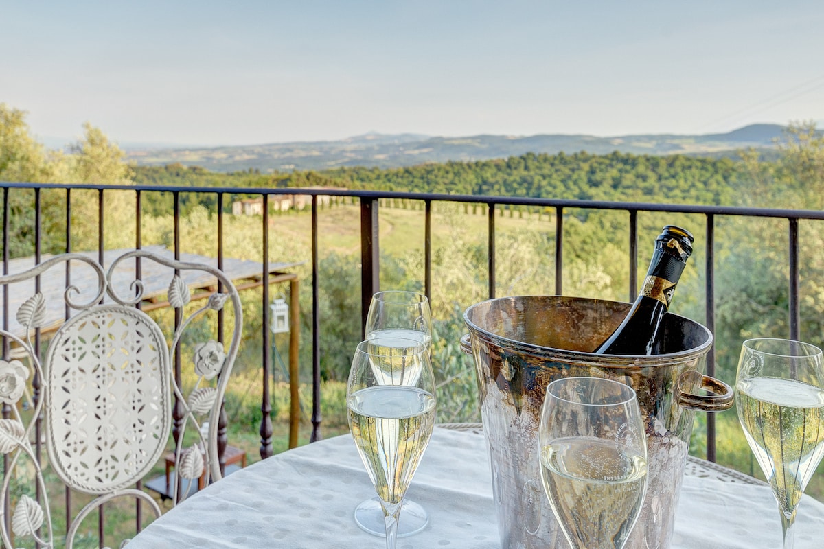 Apartment with beamed ceilings and terracotta floors, this apartment is set in a 19th-century farmhouse located in the hills of Siena in Rigomagno Toscana. From the solarium next to the swimming pool in the middle of the olive trees, you can admire the panorama of the Sienese hills and the medieval village of Rigomagno ... all this characterizes the ideal holiday for couples or families who want to relax. Solarium, garden, terrace, swimming pool are exclusively for guests of the apartment.