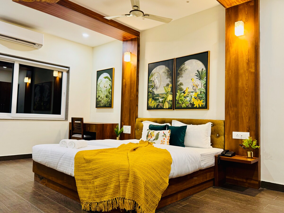 Our Signature Room is a design-forward space featuring a King bed, an open to sky bathroom, and a bathtub blending comfort with thoughtful aesthetics. The room is equipped with high-speed Wi-Fi, air conditioning, and a smart TV for a seamless stay. Located just 1.5 km from the beach and 900 meters from the local market, the property offers easy access while remaining a peaceful retreat. Our spaces are intentionally designed to foster community, creativity, and authentic travel experiences.