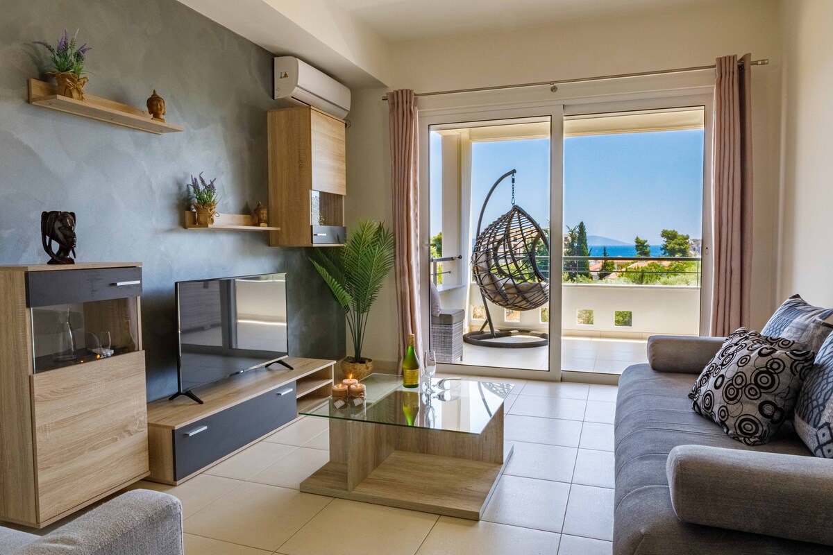 We welcome you to our brand new luxury apartment in the beautiful city of Nafplio. You will be accommodated in a fully equipped 2 bedroom apartment with comfortable balconies, breathtaking views and attention to detail. Our apartment is located in a safe and quiet area, in a complex of luxury houses, with underground parking, elevator, 900m from Nafplio Town Hall.