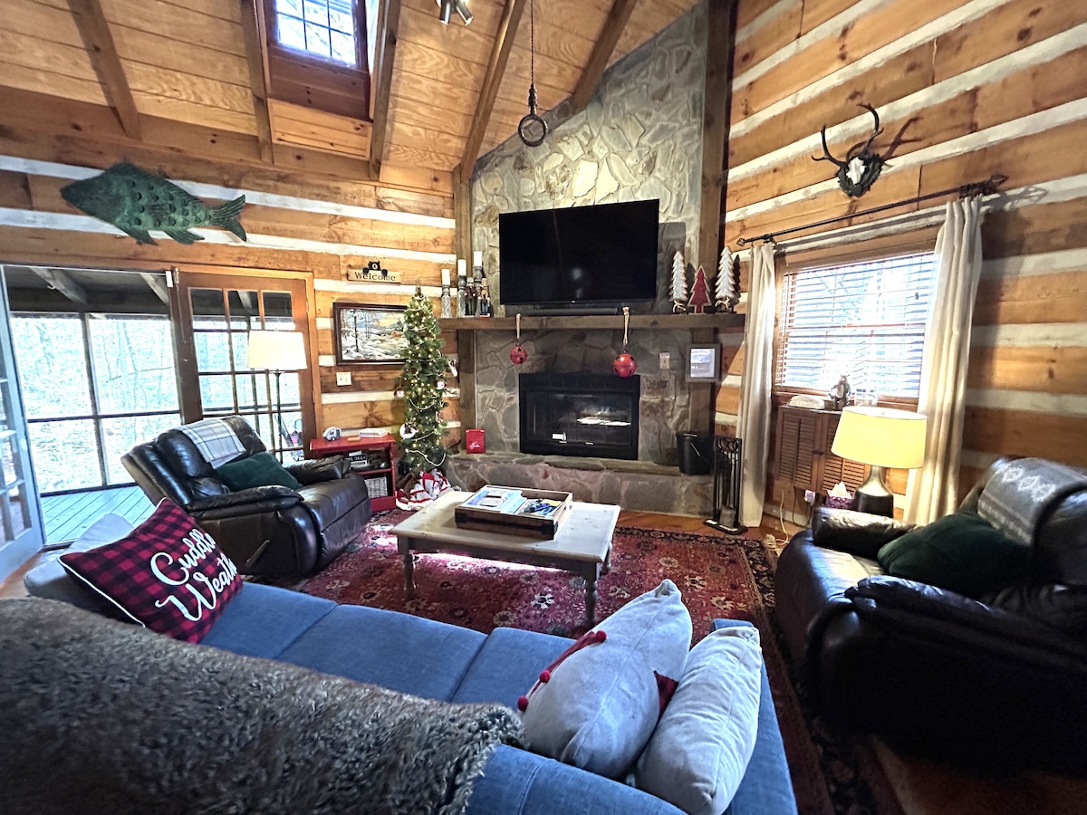 Je verblijf in Chasing Fireflies is een onvergetelijke ervaring! Deze charmante hut is een perfecte mix van modern en rustiek. Het is moeilijk om een plek te vinden in deze hut zonder adembenemend uitzicht! 3 MIJL NAAR HET CENTRUM VAN BLUE RIDGE 2 KING SUITES MET EEN ONGELOOFLIJK UITZICHT 2 1/2 LUXE BADKAMERS GASHAARD BINNEN VOLLEDIG GEVULDE KEUKEN 2 ENTERTAINMENTDEKKEN MET STENEN OPEN HAARDEN, EETHOEK, BAR, SCHOMMEL, PINGPONG, EN BUITEN HET UITZICHT OP DE WERELD BUBBELBAD SNEL INTERNET PARKEERMOGELIJKHEID VOOR 3 VOERTUIGEN