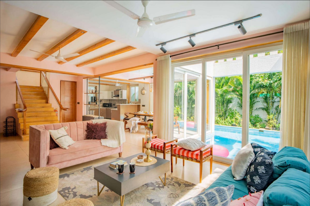 Stijlvolle 2BHK villa. zwembad & groen. Zomerlied