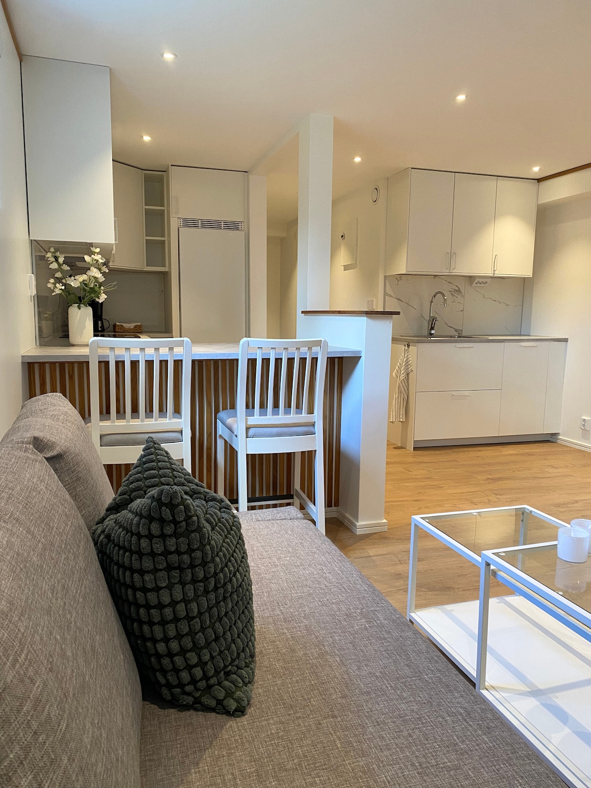 Onlangs gerenoveerd en grondig fris appartement met hoge normen in rustige en mooie omgeving. Het appartement heeft twee aparte slaapkamers met twee delen van 90 bedden. Elke slaapkamer en de woonkamer heeft elk een tv met een brede kanaalselectie en filmstreamingservice. De keuken is uitgerust met koelkast, magnetron, inductiekookplaat, vaatwasser en koffiezetapparaat. Badkamer was/droog machine Gratis parkeren met mogelijkheid om te kopen voor het opladen van elektrische auto. Dichtbij verschillende bushaltes.