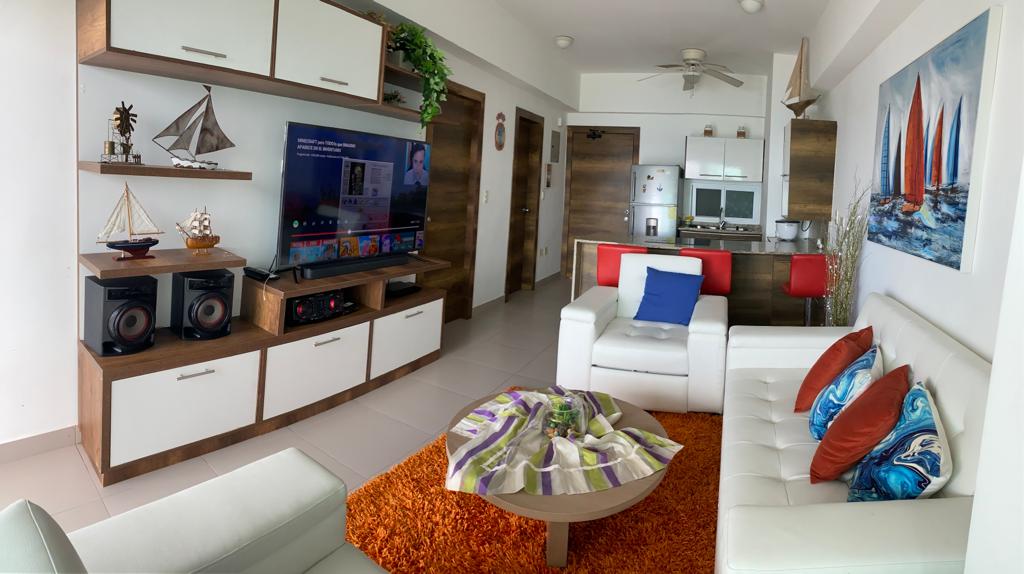 Met een bevoorrecht uitzicht vanaf de 9e verdieping in een afgesloten resort, omvat het 24-uursbeveiliging, airconditioning, het gebouw en resort heeft een elektrische generator en stortbak, DirecTV, karper en strandstoelen geïnstalleerd, mooi meubilair, overdekte parkeerplaats, directe toegang tot het strand, 7 zwembaden, 2 yacuzzis, speeltuinen, tennisbanen, voetbal, basketbal, golfito, biljart en familiegrill. * exclusief de kosten van de armband van het resort *