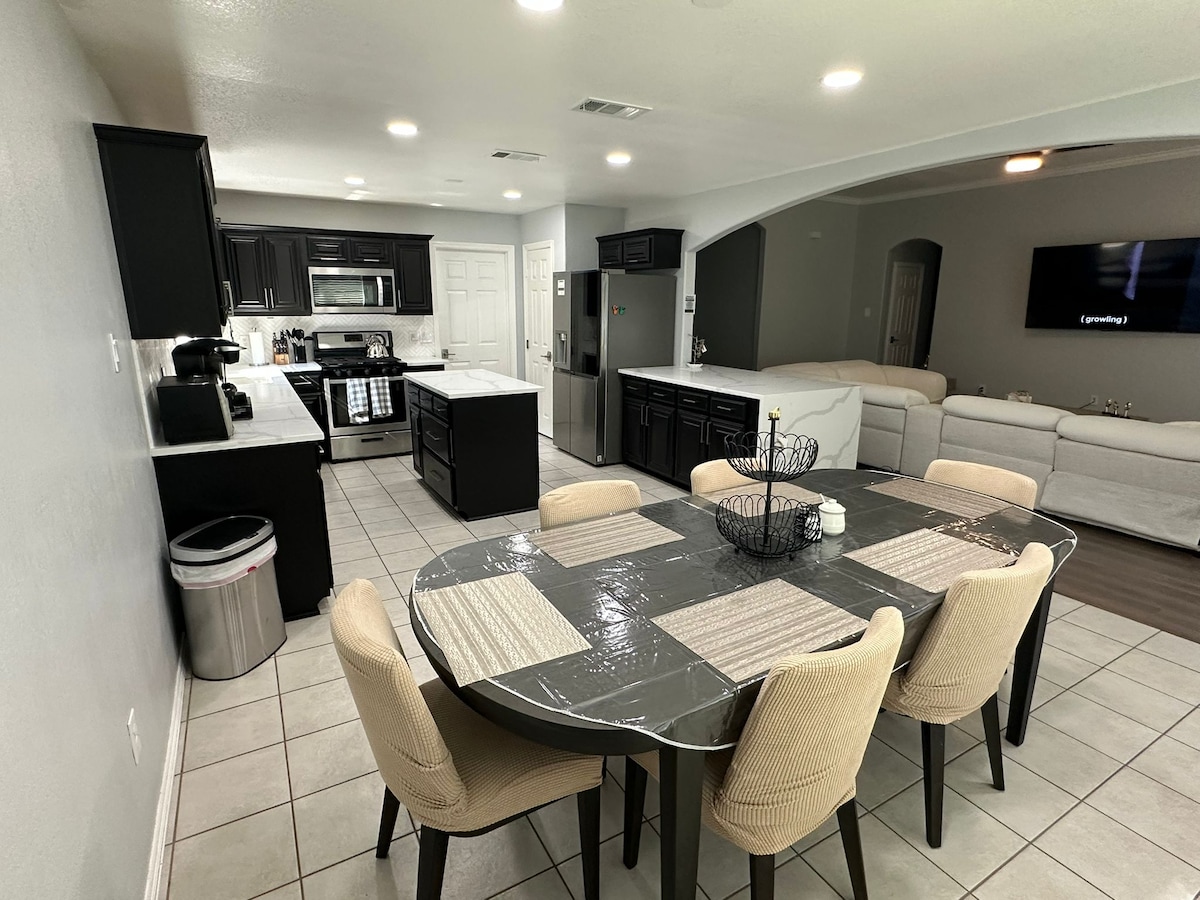 Ontspan in deze prachtige en serene, volledig ingerichte gezinswoning met 3 slaapkamers in Humble/Atascosita, Texas. Gelegen op iets minder dan 12 minuten van Bush Airport! Slechts 8-10 minuten naar Humble Civic Center! Het huis beschikt over 3 slaapkamers en 2 volledige badkamers. Geniet van een volledig uitgeruste keuken, een ruime eethoek en een gezellige mini-koffiebar! De woonkamer biedt ligbanken, een tv en wifi! Een complete waskamer! Ontspan op het buitenterras, met veel ruimte in de achtertuin. Langetermijnverhuur is beschikbaar!