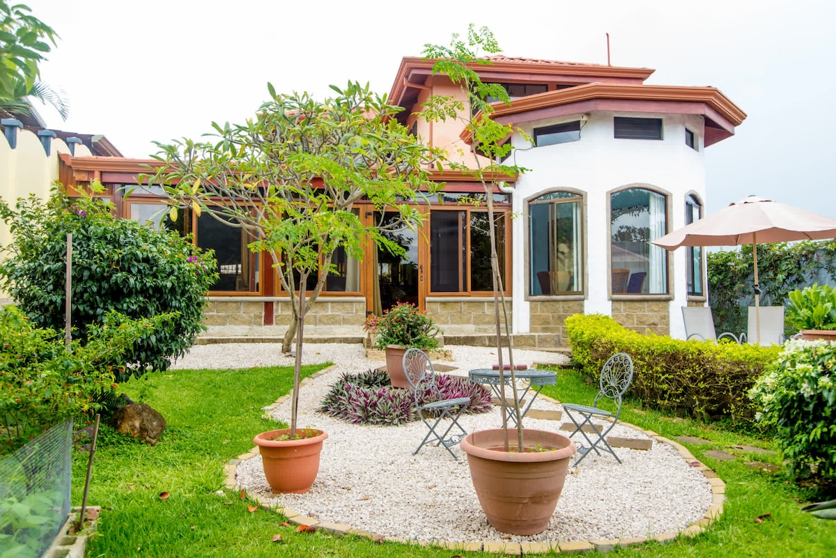Ons huis ligt hoog op een heuvel in de gevestigde en wenselijke buurt Vistas Atenas met uitzicht op het schilderachtige stadje Atenas. We hebben een onbelemmerd prachtig uitzicht van Atenas naar de hoofdstad San Jose, en hebben temperaturen die iets moderner zijn dan de vallei. Het uitzicht overdag wordt alleen overtroffen door de schitterende lichten in de nacht. We zijn een soort 3 km rijden naar het centrum van Atenas. 2 hectare verzorgde tuinen omringen ons grote moderne huis. Veilige en beveiligde parkeergelegenheid in ons omheinde en hekcomplex. Atenas is goed gelegen waardoor de toegang tot alle bezienswaardigheden populair is bij toeristen. Luchthaven Juan Santamaria 23 km, stranden aan de Pacifische kust 40 km, Arenal Volcano 111 km, San Jose 35 km.