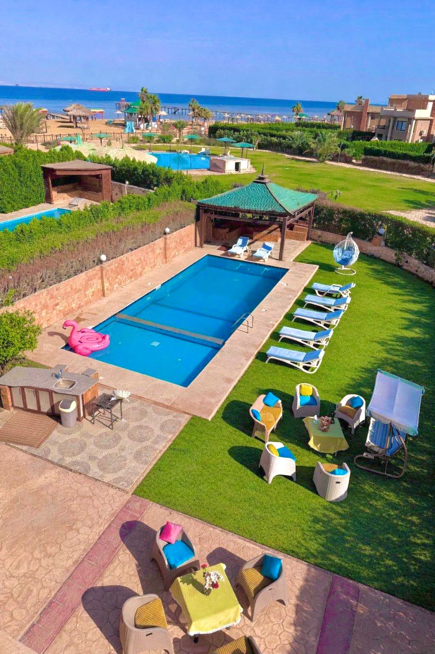 Prachtige locatie, geweldig uitzicht, rust en schoonheid van natuurlijk koraalrif🐠 🪸. Gelijkvloerse villa aan zee (In Stella De Mare resort met zeezicht) met groot terras en tuin. Uitzicht op het strand en het zwembad. Volledig ingericht met keukengerei en apparaten. (Opmerking: huur is alleen voor gezinnen)