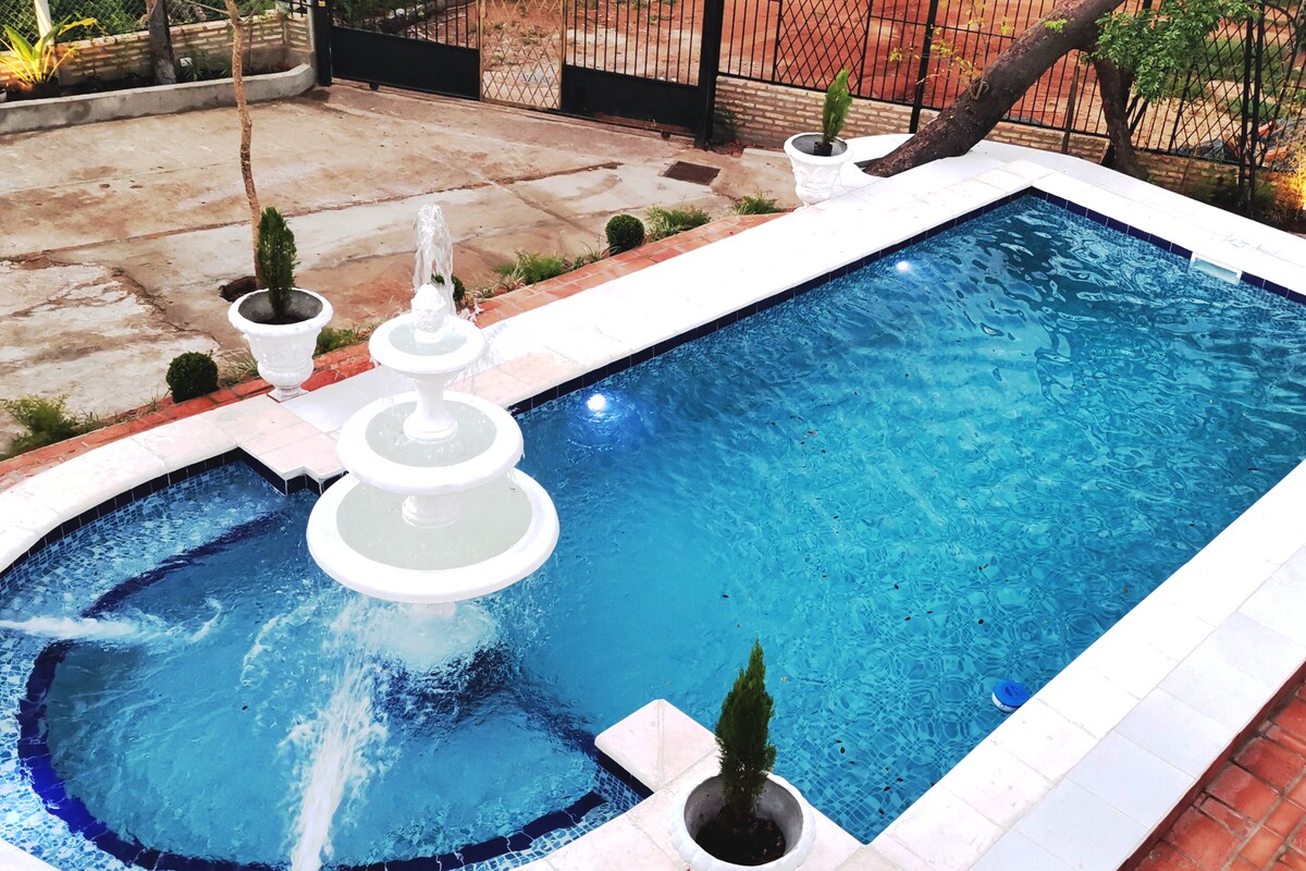 Ongeveer een uur rijden van Asuncion. De Cerro Kavaju in Caacupe is een beschermd natuurgebied. Je zult genieten van de schilderachtige rit als je door de uitlopers gaat, bomen en verschillende boerderijdieren (paarden, geiten, koeien, lokale fauna met wilde dieren). Speciaal voor jonge gezinnen met kinderen voor een boerderij-ervaring. Geniet van deze hele ranch met alle nodige voorzieningen, grill voor barbecue, ontspan in Paraguayaanse hangmatten en een zwembad. Stel je voor dat je geniet van een asado met uitzicht op de prachtige zonsondergangen van de bergen.