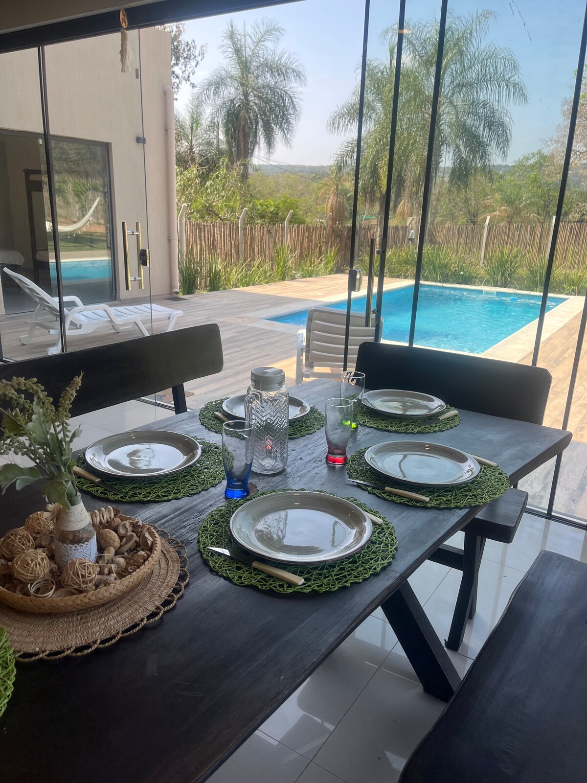 Gezellige suite omgeven door weelderige bomen, zwembad en grill, gelegen in het Amfitheater op een steenworp afstand van supermarkten, restaurants, bars en toeristische plaatsen om te genieten van het beste van Sanber! Het is van alle gemakken voorzien om uit te rusten, te koken, te werken en een geweldige tijd te hebben. De plek is ontstaan uit de visie van het organiseren van een milieuvriendelijk huis met een zeer natuurlijke omgeving, met inheemse bomen van grote havens en verschillende soorten vogels die de plaats bezoeken.