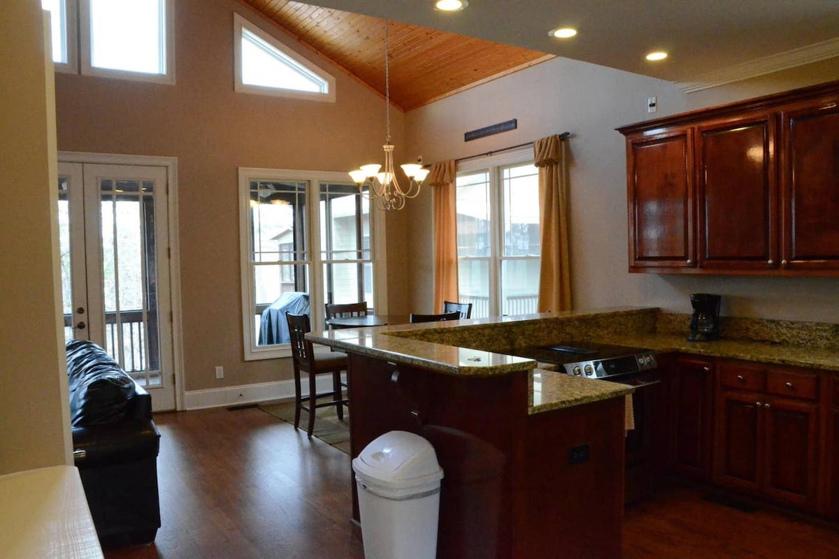 Dit is de ideale plek om je familie of groep vrienden mee te nemen (tot 8) - zwem bij het zwembad of het meer, en je kunt de boot ter plaatse huren als je dat wilt. Dit huis met 4 slaapkamers/3,5 badkamers is geschikt voor 2 gezinnen en hun kinderen. De mastersuite bevindt zich op de begane grond en biedt het comfort van een kingsize bed. De keuken is goed ingericht als je ervoor kiest om in te verblijven of als er verschillende restaurants zijn binnen 10-15 minuten rijden.
