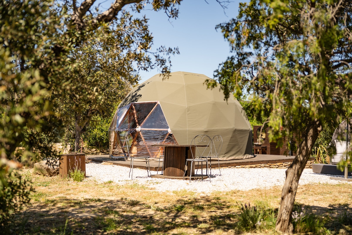 Onze koepel zal je een unieke sfeer bieden, dicht bij de natuur terwijl je je erg op je gemak voelt. Beleef een ongewone ervaring met slapen in een cocon vol charme met een panoramisch dak boven de olijfbomen... Het is ideaal om dit moment van ontsnapping als een stel of gezin te beleven. Alle gemakken zijn niet opzij gezet, tweepersoonsbed, 1 tweepersoonsbed met veel comfort, en 1 enkele stoel, ook privé sanitaire voorzieningen in de accommodatie...