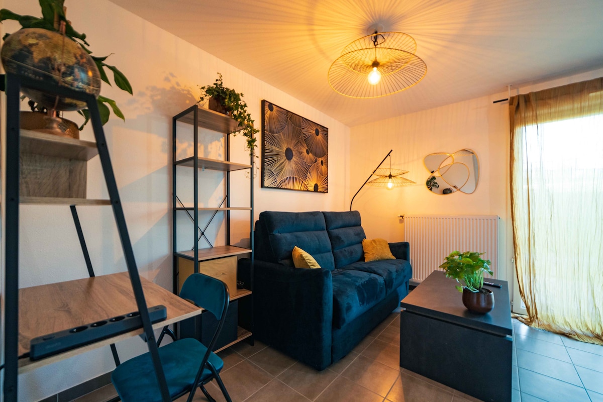 Welkom in ons charmante appartement T1, gelegen in het hart van Miserey-Salines, op 5 minuten van Besançon. VOLLEDIG GERENOVEERD appartement in de zomer van 2023 met hoge normen (rolluiken, tv, slimme wifi, inloopdouche, kookplaat, oven...enz.) Gunstig gelegen op 5 minuten van de snelweg, 8 minuten TGV station en 10 minuten Micropolis paal met de auto Onze plek biedt het comfort en gemak dat je nodig hebt om een aangenaam verblijf in het gebied te hebben.