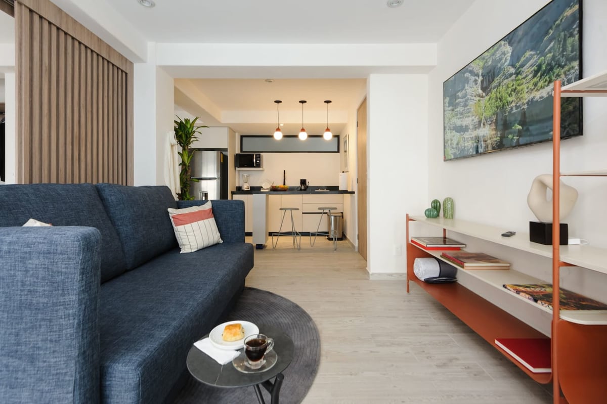 Geniet van luxe in ons exclusieve Condesa-appartement, gelegen in een gloednieuw, modern gebouw. Deze prachtig ontworpen ruimte is een echte parel in het hart van Condesa en biedt HSI. Badend in natuurlijk licht en gevuld met alle voorzieningen die je nodig hebt, zijn je comfort en gemak onze topprioriteiten. Plus, met 24/7 beveiliging, kunt u gemakkelijk uitrusten. Ons appartement is uitzonderlijk en onze locatie is onverslaanbaar, wat een perfecte mix van vrije tijd en exclusiviteit geeft in het hart van Condesa.
