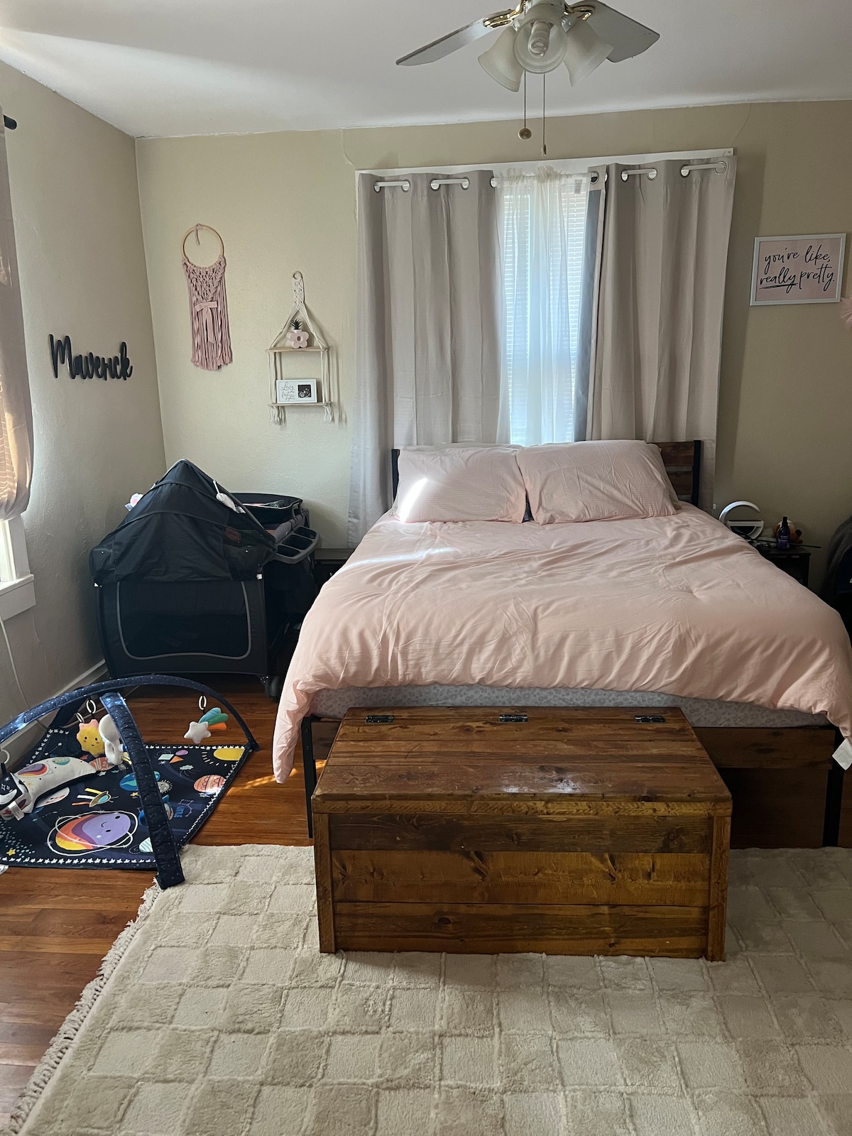 Gehele woning met 3 slaapkamers en 2 badkamers ligt op een steenworp afstand van het centrum van Sealy en is volledig gerenoveerd met stijlvolle afwerkingen en VOLDOENDE parkeergelegenheid! Alles wat je voor een comfortabel verblijf nodig hebt! Elke kamer is compleet met een tv en de woning heeft snel internet. Alle geweldige restaurants van het centrum liggen direct voor de deur. Veel gasten vinden het leuk om de treinen in de buurt te zien komen en gaan, maar anderen niet. Geluidsmachine beschikbaar indien gewenst.