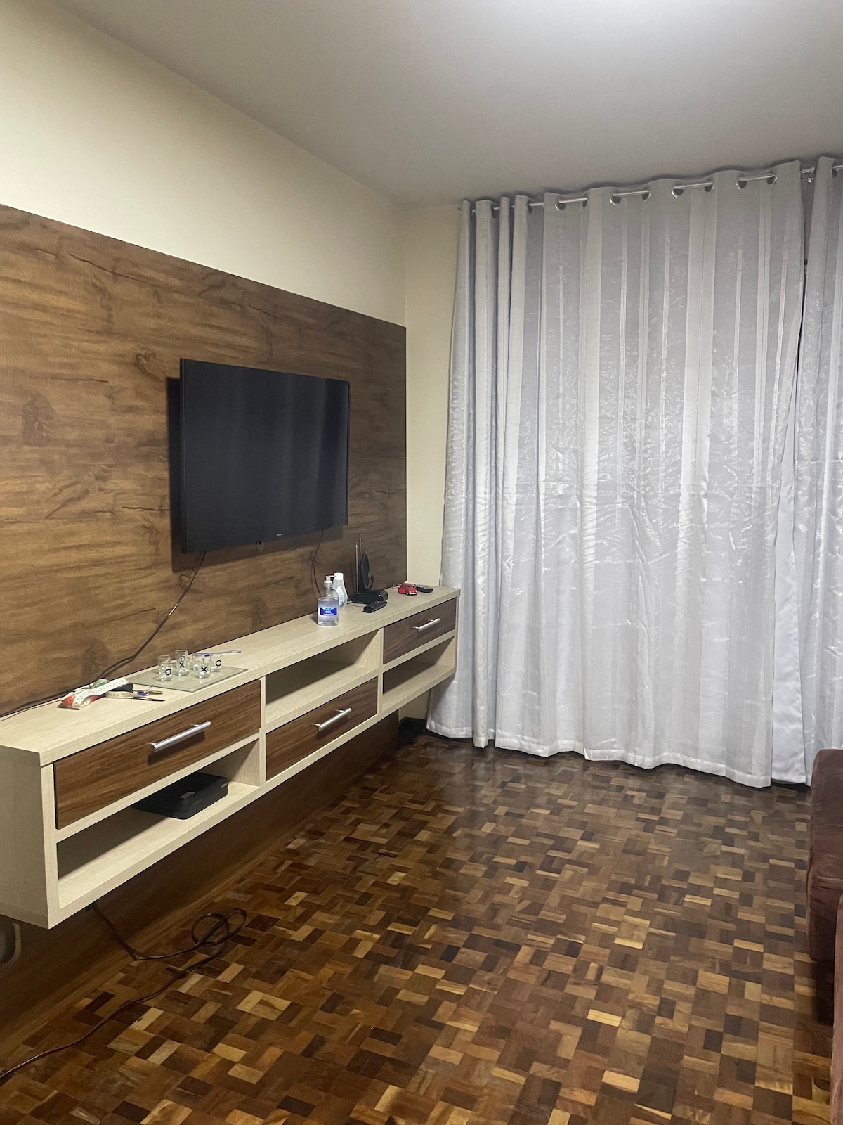 Gezellig appartement in het centrum van Ponta Grossa - 1 slaapkamer + slaapbank in de woonkamer! Welkom in je comfortabele hoekje! Ons appartement is ideaal voor koppels of zakelijke reizigers. Gelegen in een strategische regio, biedt het functionaliteit en gemak voor je verblijf. Op enkele meters van Mc Donalds, Santa Casa, Ponta Grossa State University, apotheken en markten! Gebouw in staat van voltooiing! Capaciteit tot 3 personen! Huisdiervriendelijk!