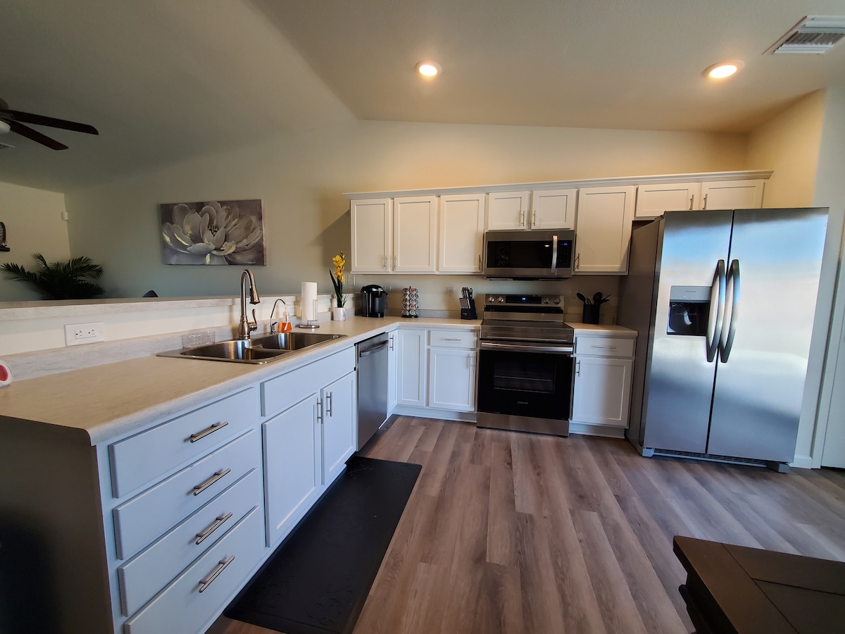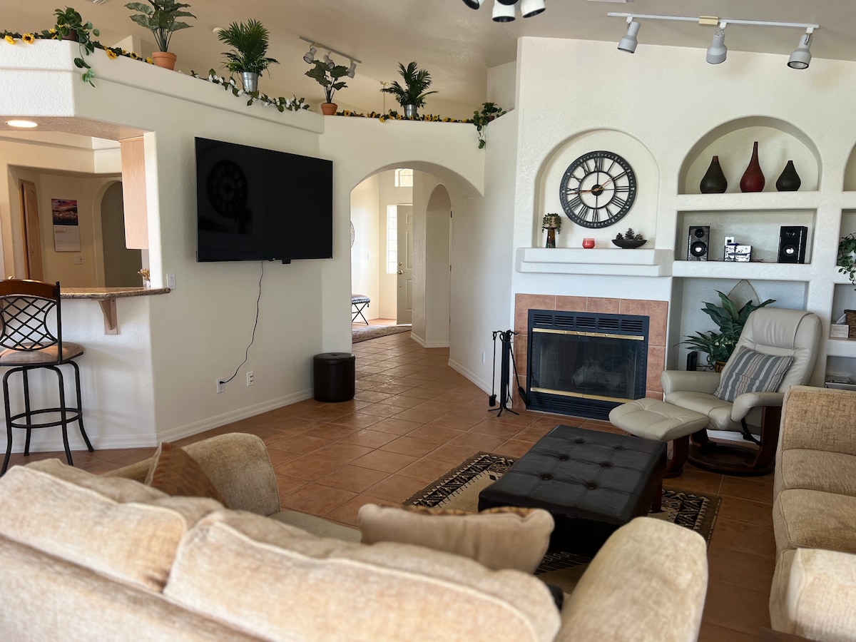 Open concept plattegrond voor het vermaken van familie en vrienden. Sleutelloze toegang voor een stressvrije check-in. Modern en schoon met veel daglicht. Onlangs gerenoveerd met quarts aanrechtbladen en roestvrijstalen apparaten. Houd er rekening mee als je voor een vriend boekt. We accepteren geen reserveringen van derden. Dit is reden voor onmiddellijke annulering zonder restitutie. Slechts tien minuten lopen van de rivier. De beste accommodatie in Bullhead City (Tri-Stare-gebied). Internetsnelheid: 350 MPS