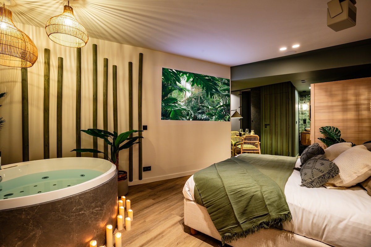 🌴 Welcome to Bali Enjoy a refined experience, perfect for sharing connection and relaxation. 🛁 Wellness: whirlpool bathtub + premium Canadian spruce sauna. 🎥 Entertainment: movie night with 4K projector and popcorn. 🤫 Little secret: hidden room accessible if desired.