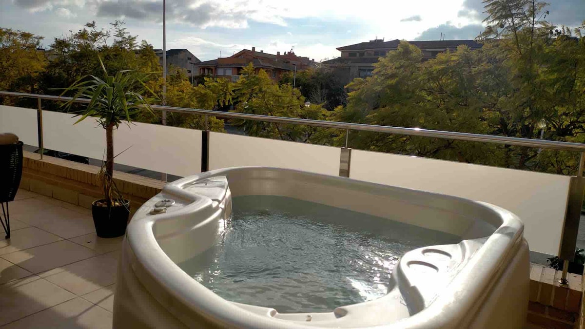 Nieuw, groot terras met eigen jacuzzi en zwembad